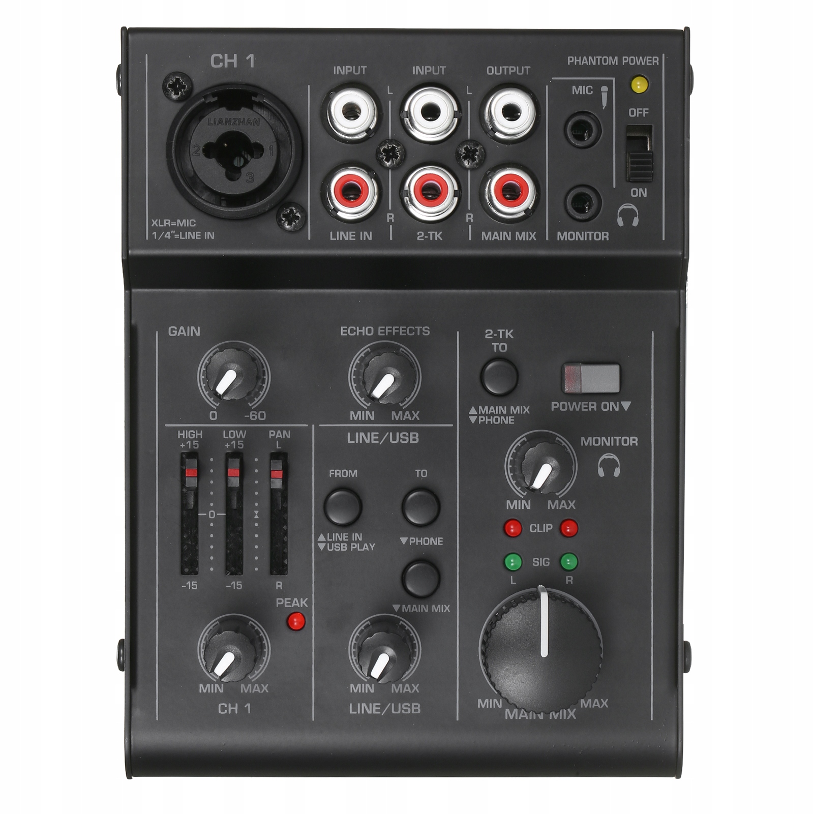 - Інтерфейс типу U USB, для джерела живлення, надсилання аудіо даних між аудіо змішувачем та комп'ютером. 4 Змішувальна консоль, виготовлена з металевої оболонки, світла, компактна розмір долоні, зручна для носіння.