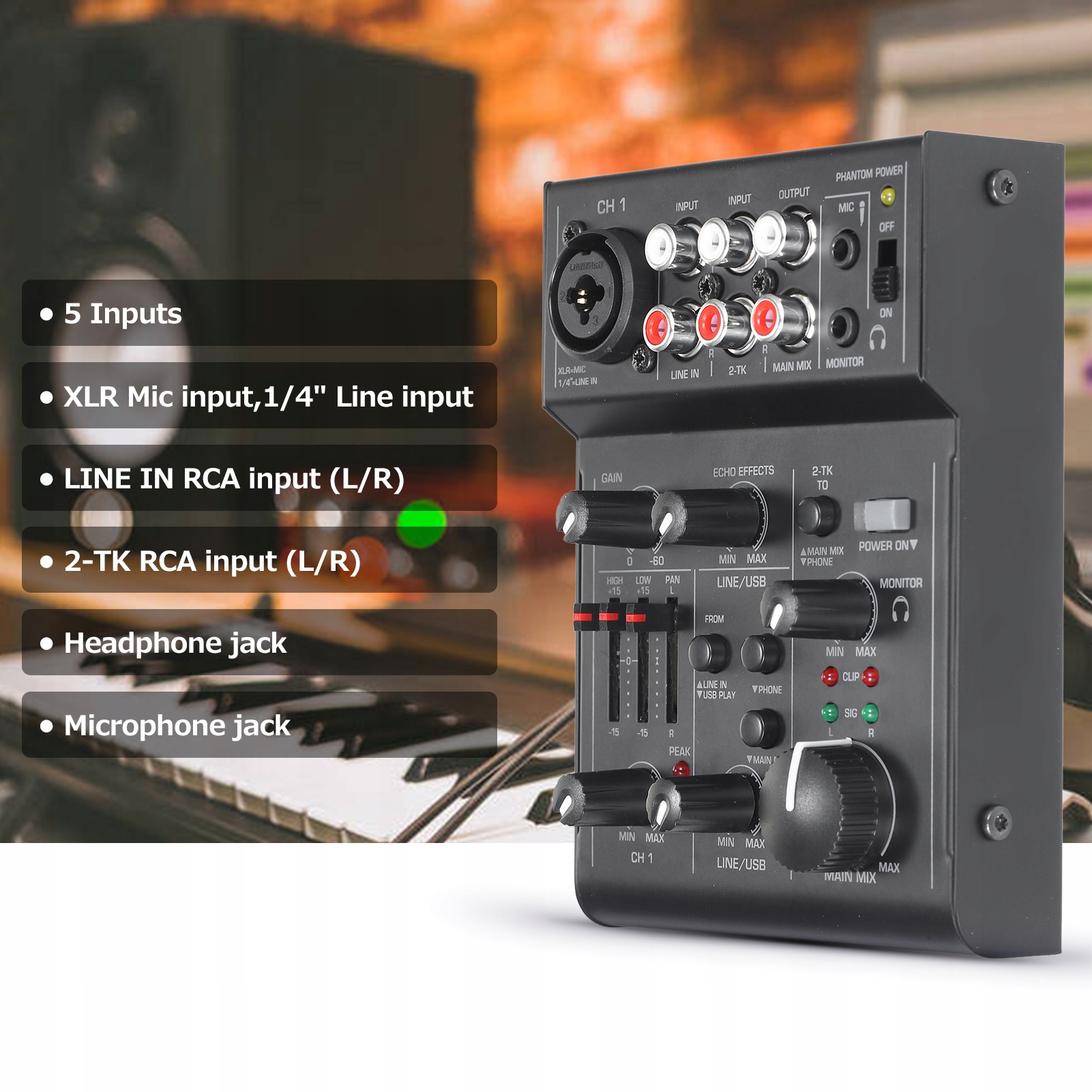 5. 5-канальна змішувальна консоль, виготовлена з металевої оболонки, світла, компактного розміру долоні, зручно для перенесення.