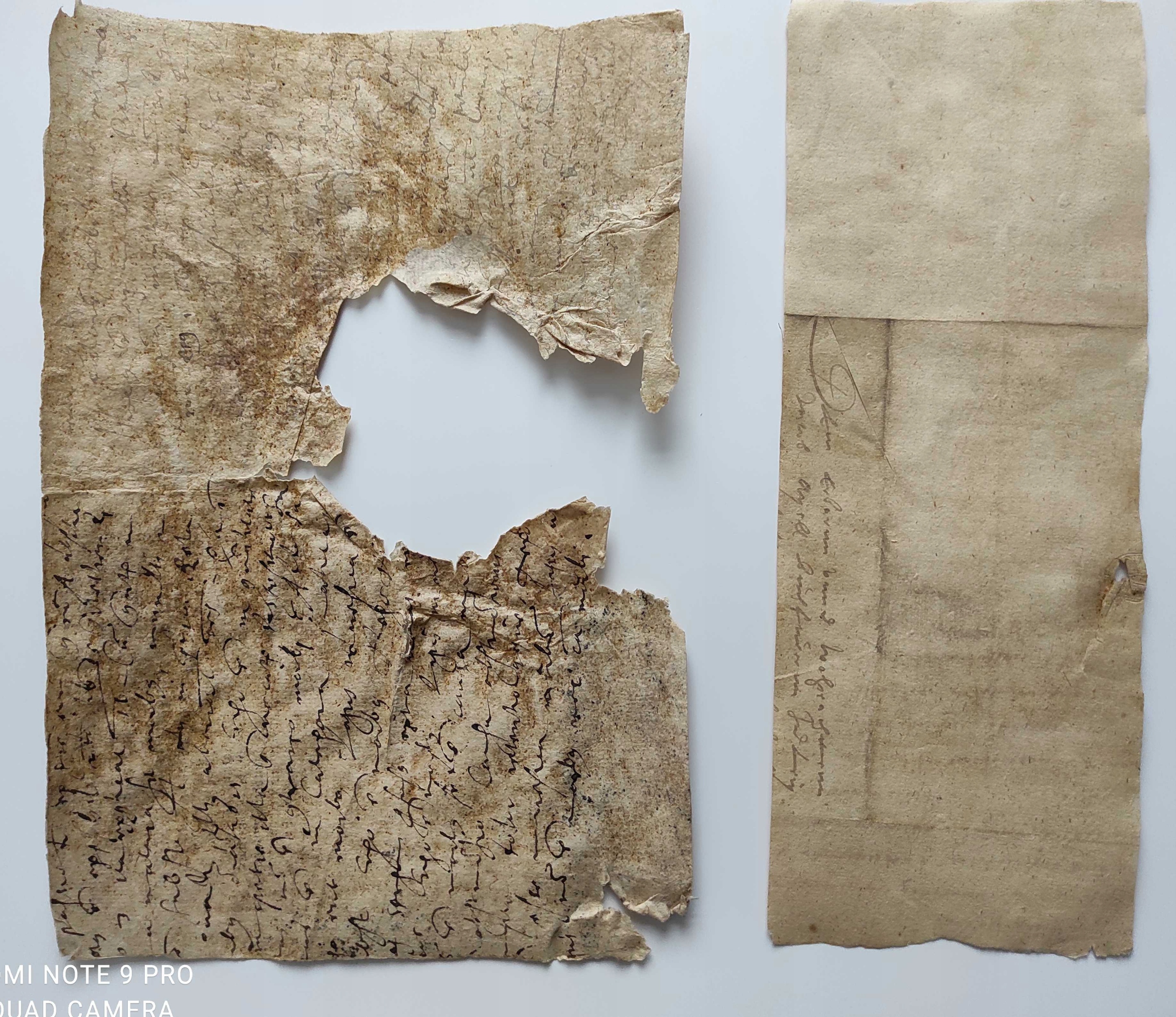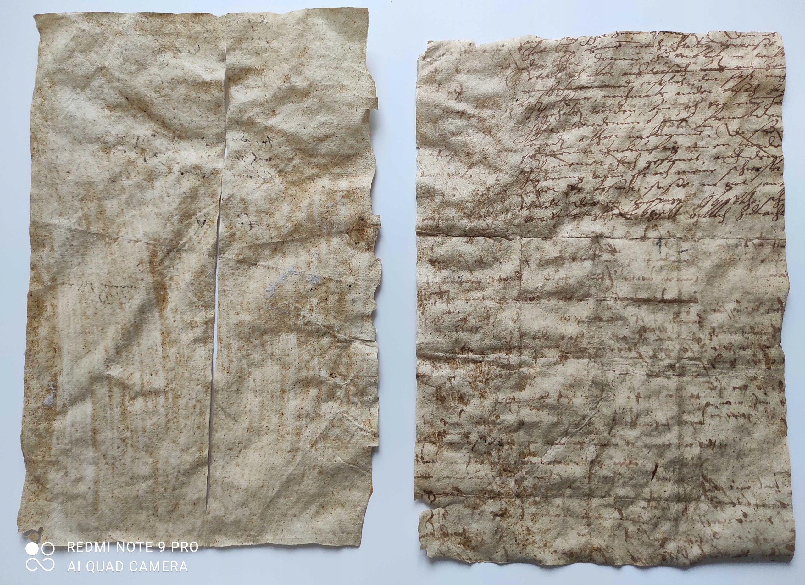 5,5 пошкоджених карток із рукописами приблизно 1560-1580 років. Половина сторінки — це половина листа, адресованого Якобу Апелю, книгарню з Лейпцига. Сліди кістяного клею - рукописи, витягнуті з палітурки стародруку.