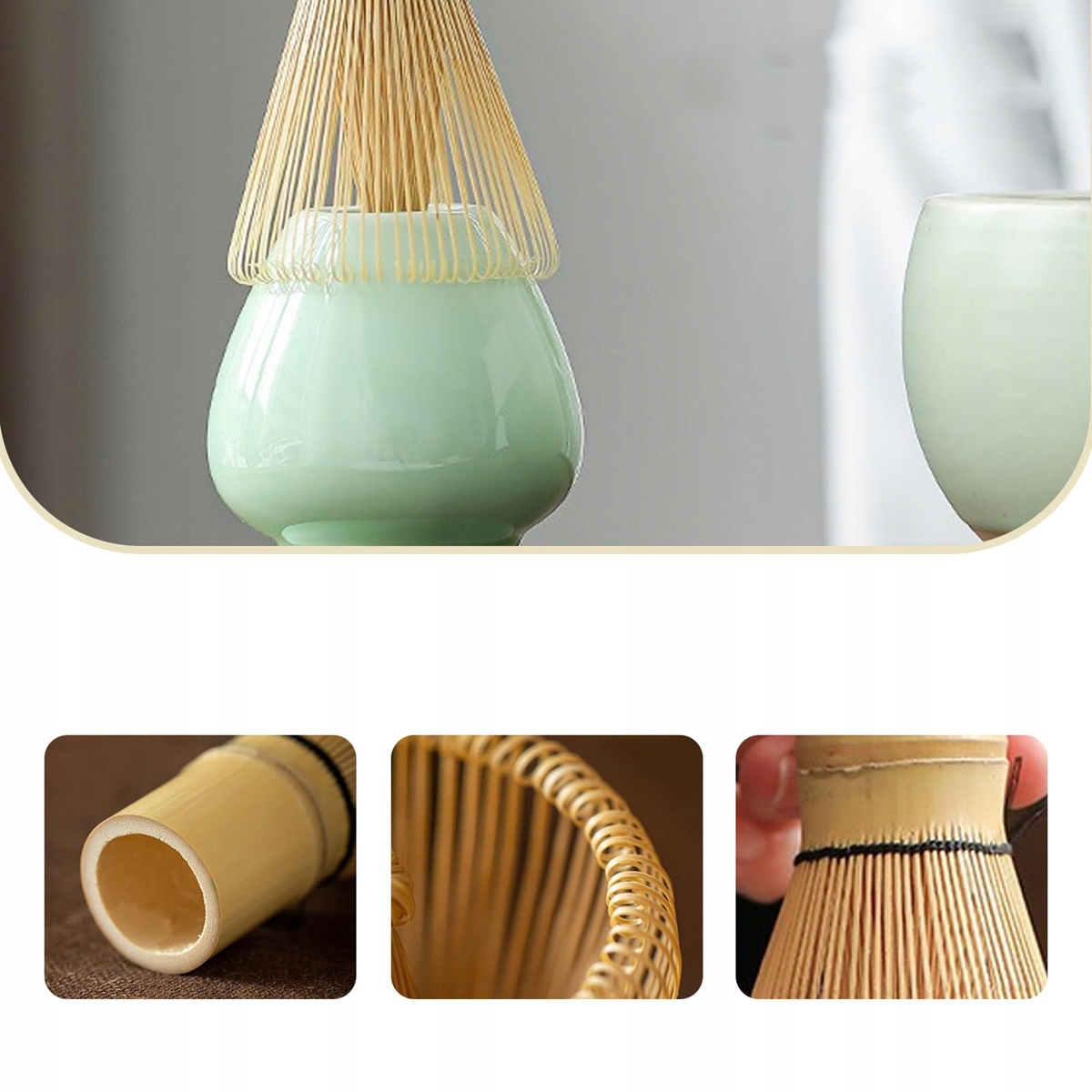 високоякісна бамбукова щетина - наша мітла виготовлена з високоякісної бамбукової щетини, вона не тільки довговічна і довговічна, але й оптимально вивільняє аромати чаю під час змішування матчу, що забезпечує справжній досвід матчі.