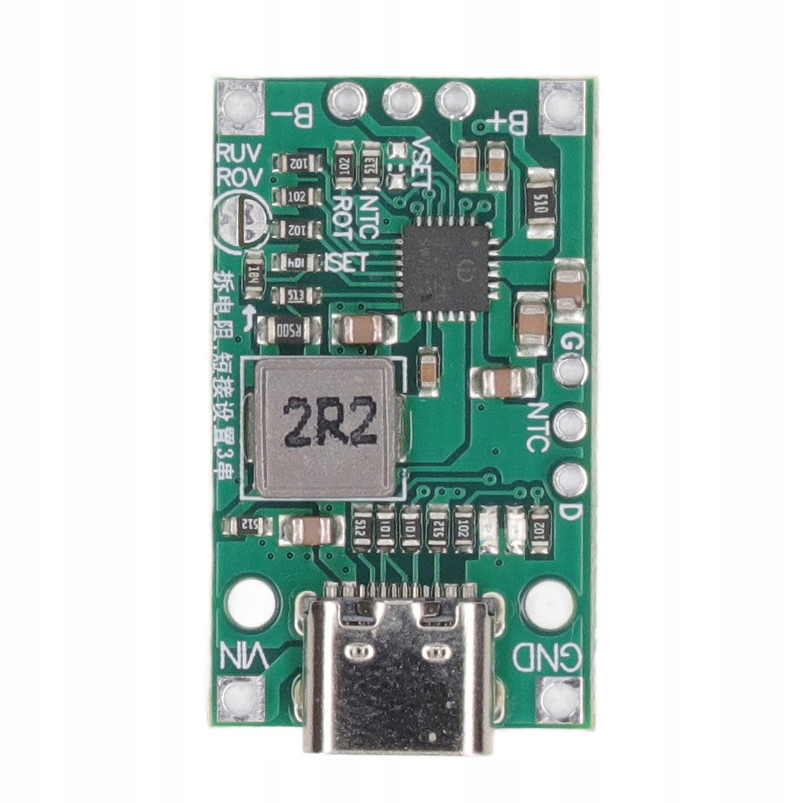 Цей модуль застосовний до літієвої батареї 2S або 3S 3,7 В. Коли встановлено коротке замикання за замовчуванням 2 рядки. При використанні 2 рядків модуль може використовувати власну функцію вирівнювання батареї, що дуже практично. Як вхід можна використовувати порт типу C і зварювальну лінію. Коли порт Type-C підключено до джерела живлення швидкої зарядки, зарядна напруга автоматично регулюється для покращення продуктивності. Якщо вхідна напруга на вході зварювального дроту нижча за напругу батареї, модуль може працювати лише в режимі підсилення.