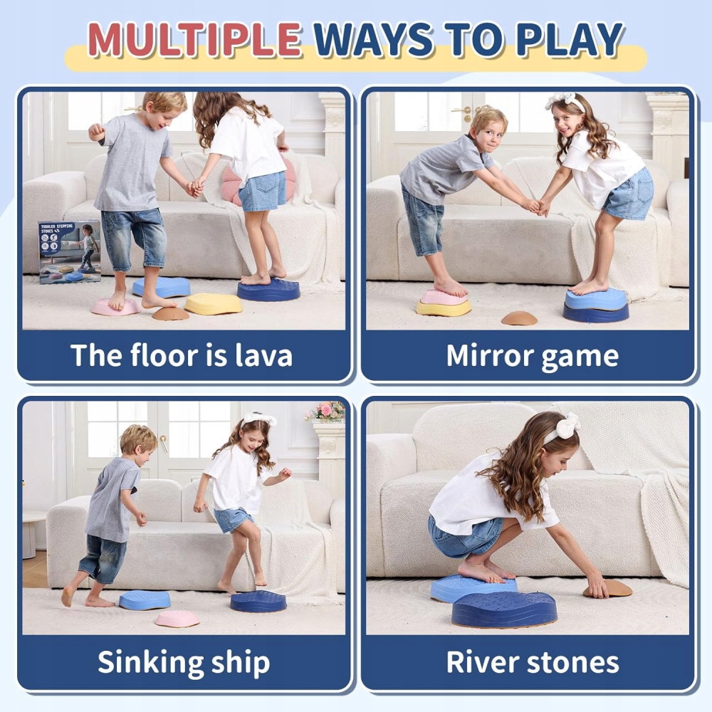 - Виготовлений з нетоксичного та здорового матеріалу PP без запаху. Кожен кроковий камінь має вантажопідйомність до 70 кг, що достатньо для підтримки кроків для дорослих! Малюки, діти та навіть дорослі можуть приєдналися та весело розважитися. Ідеально підходить для сімейних ігор, змагань братів і сестер для створення прекрасних спогадів разом.