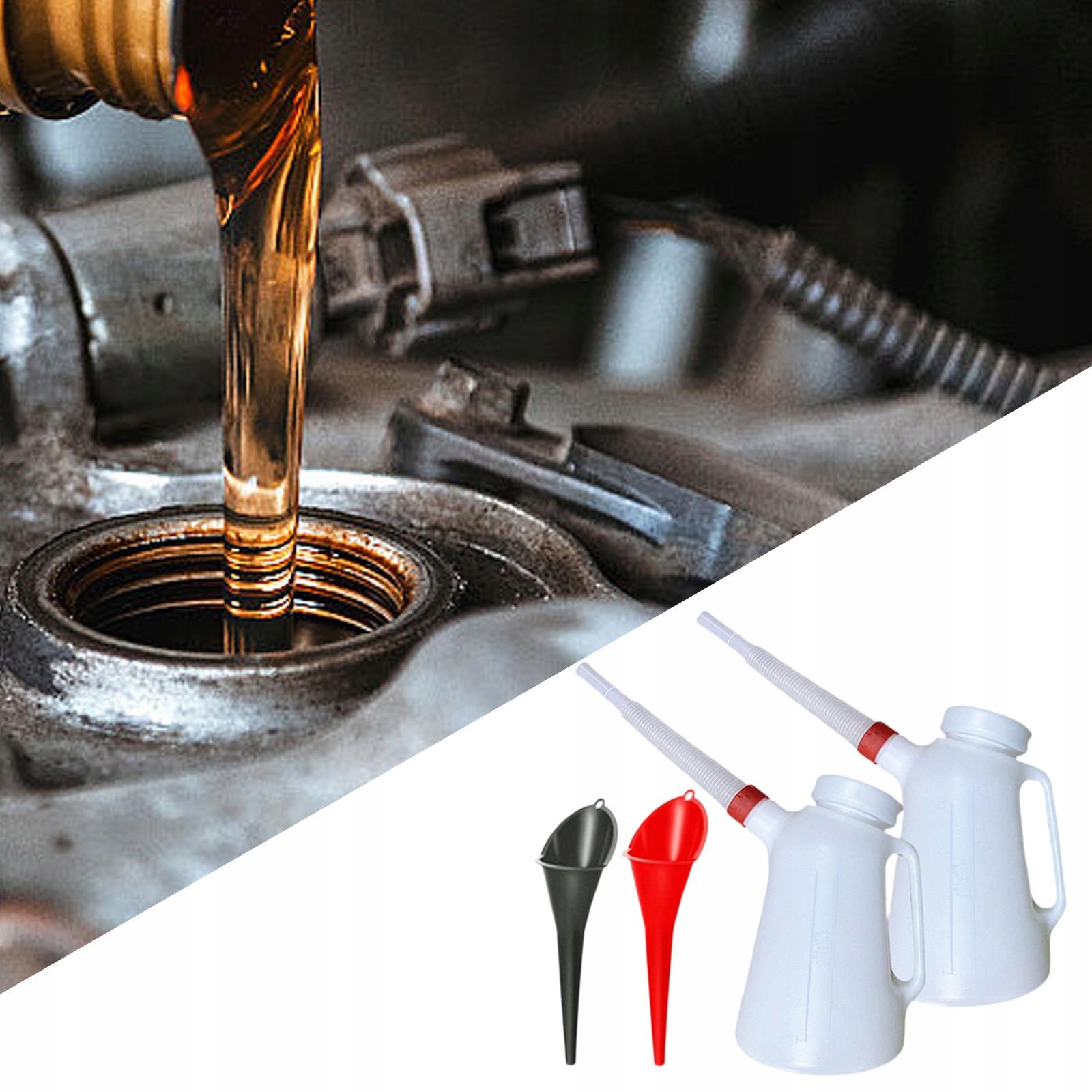 [Широке застосування]: цей масляний ємність призначений для додавання різних типів оливи в автомобільні двигуни, що робить його універсальним і придатним для різноманітних робіт. транспортні засоби.