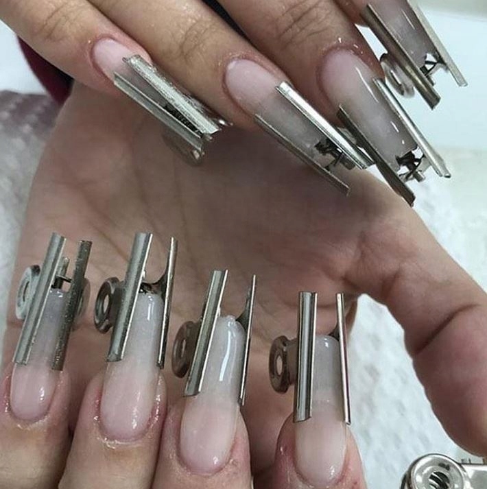 Металевий затиск, який використовується для затискання та формування С-подібної кривої гелевих і акрилових нігтів на шаблоні або типсах.