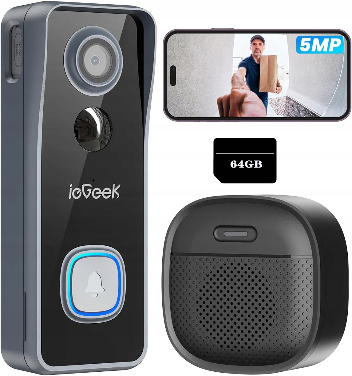 5 МП ВІДЕО ДОМОФОН WIFI 2,4 ГГц QHD КАМЕРА ДОМОФОН SMART Відео 1660p PIR 64 ГБ