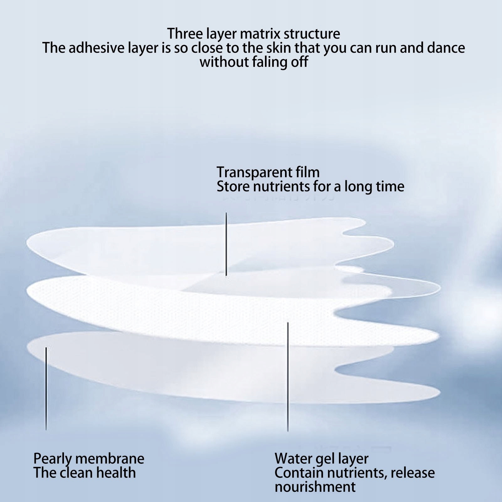 5. 5 пар: 5 пар зарядки, гідрогелеві шари, зберігання поживних речовин, виділення поживних речовин, тривале зберігання поживних речовин, чистий і гігієнічний.