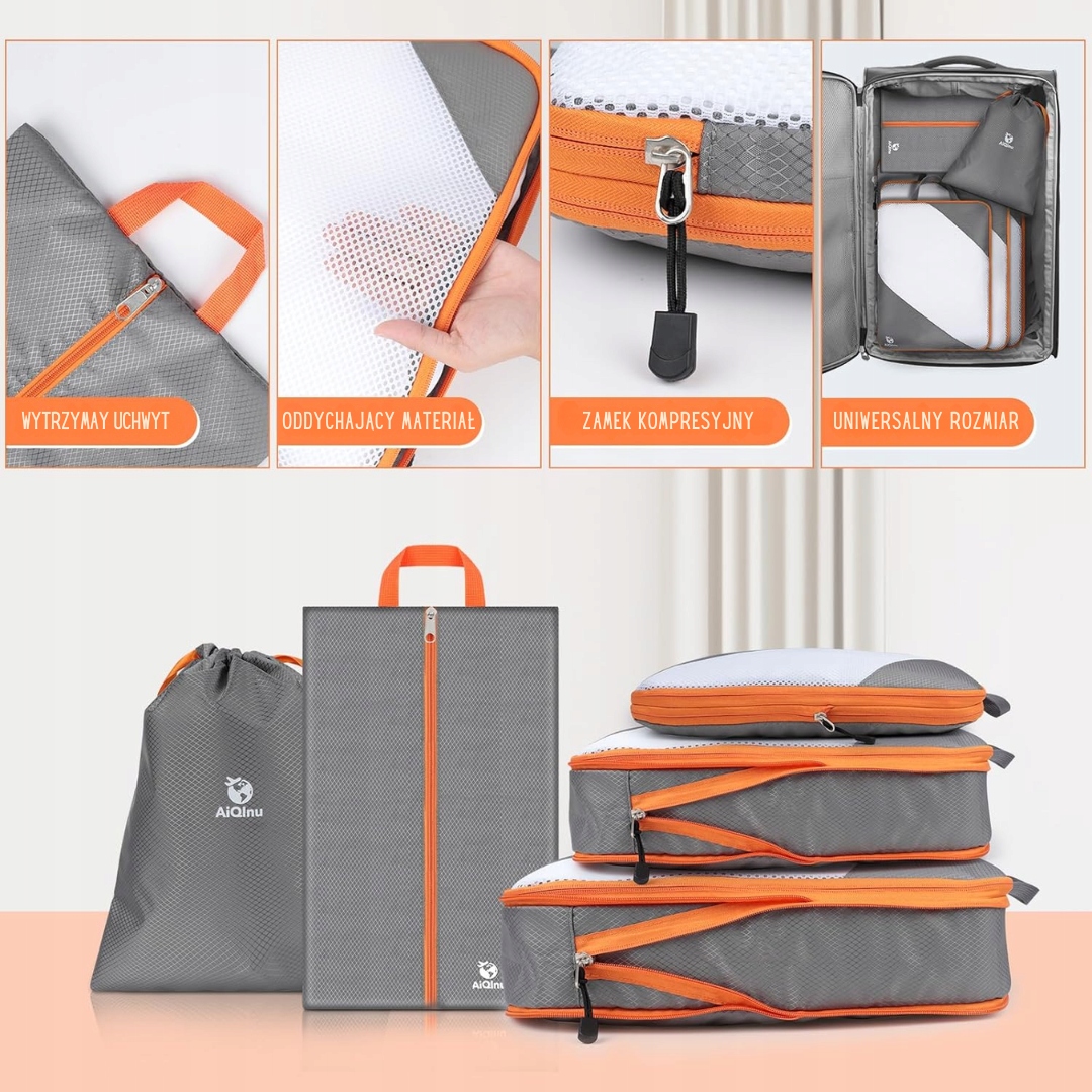 Набір включає 3 кубики стиснення, взуттєву сумку та сумку з струною - ідеально підходить для одягу, електроніки, косметики та інших аксесуарів.