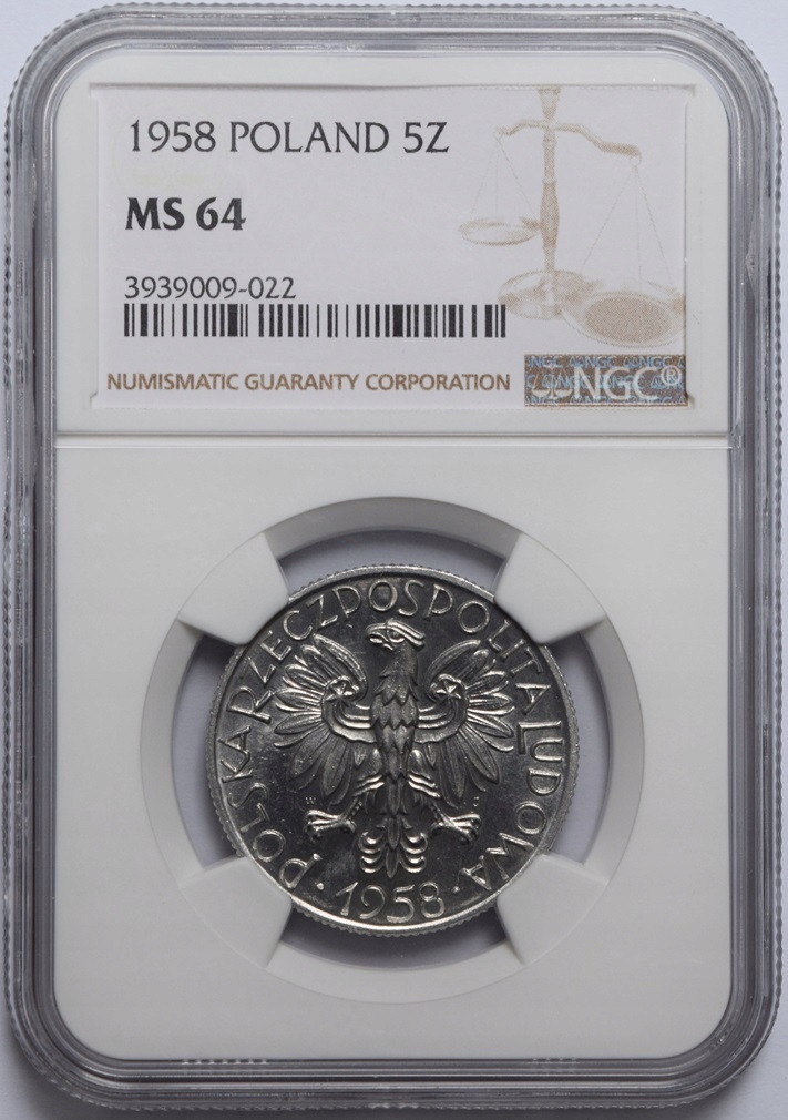 5 PLN FISHMAN 1958 SNOWMAN - NGC MS64