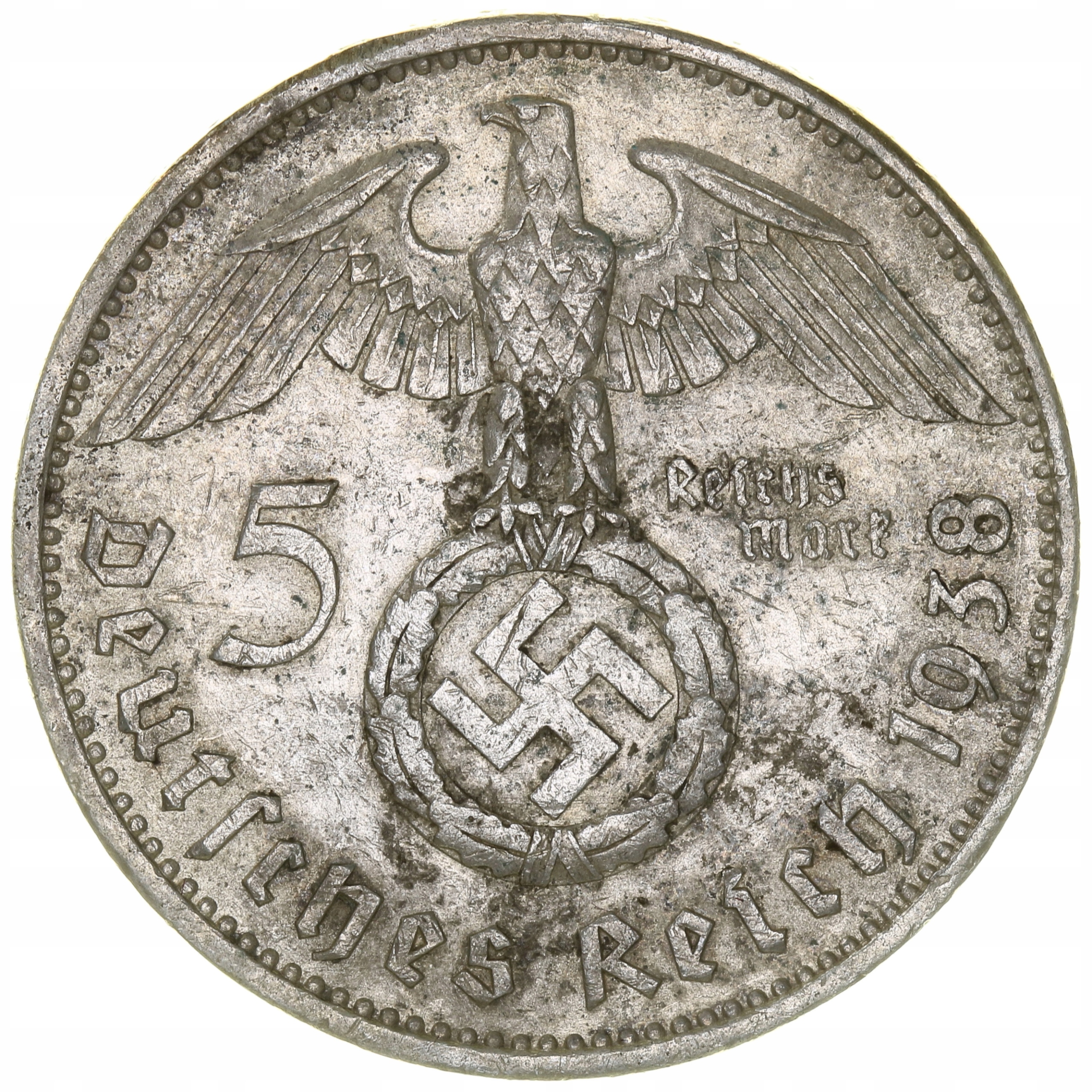 5 рейхсмарок рейхсмарка 1938 року Гінденбург. І Берлін Третій Рейх