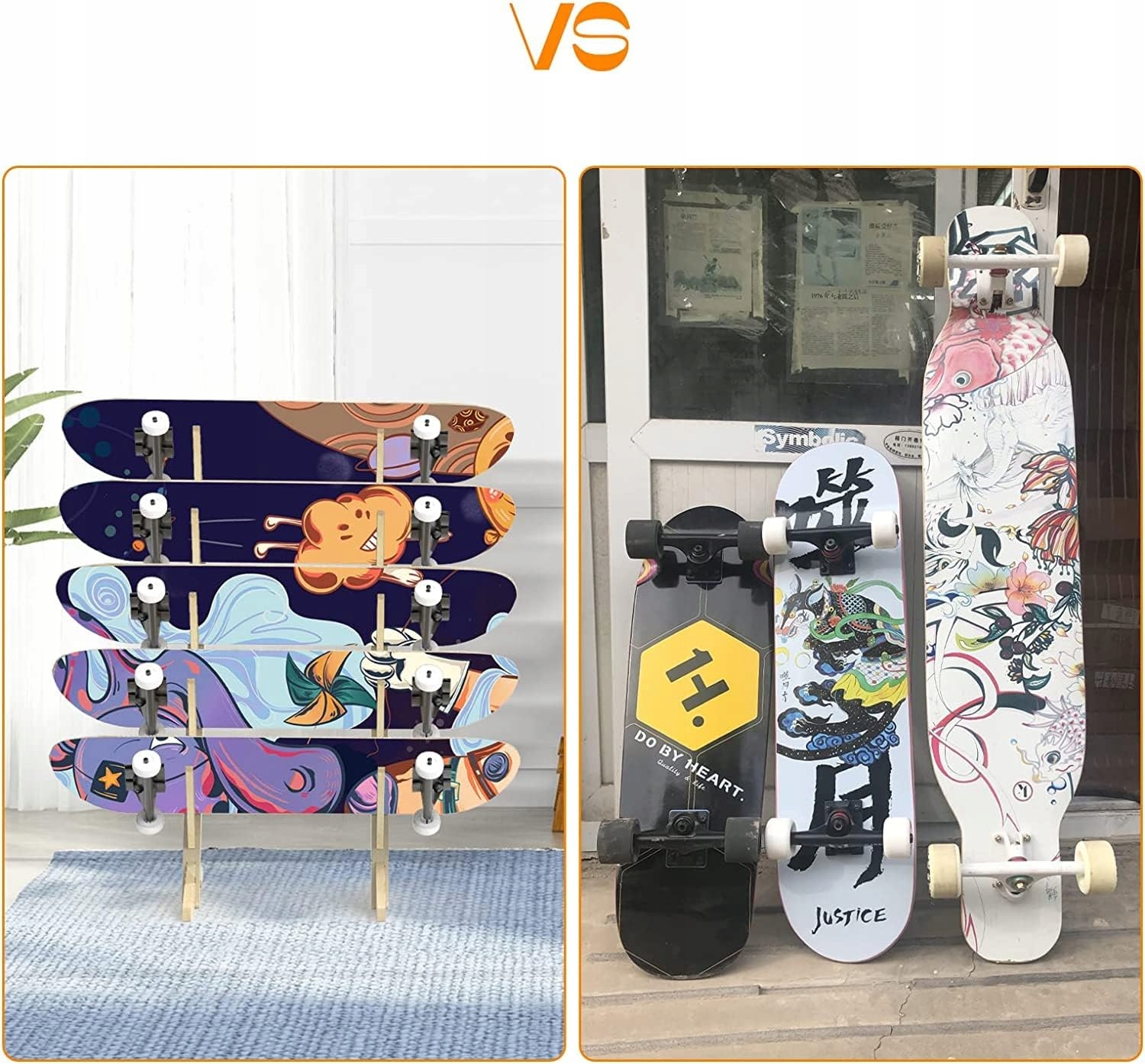 Скейтборд, встановлена на підлозі, має 5 похилих прогалин, в яких ви можете зберігати всі скейтборди, придатні для скейтборду різних розмірів. Суцільний