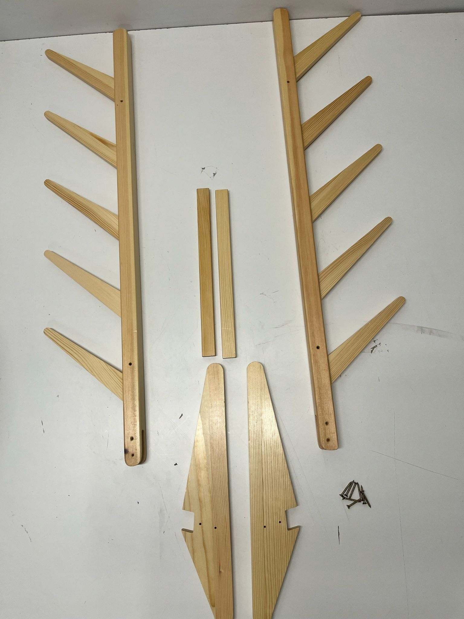 П'яти -шлейф -тримач скейтборду виготовлений із 100% суцільної соснової деревини, а його унікальний дизайн робить його більш компактним та стабільним.