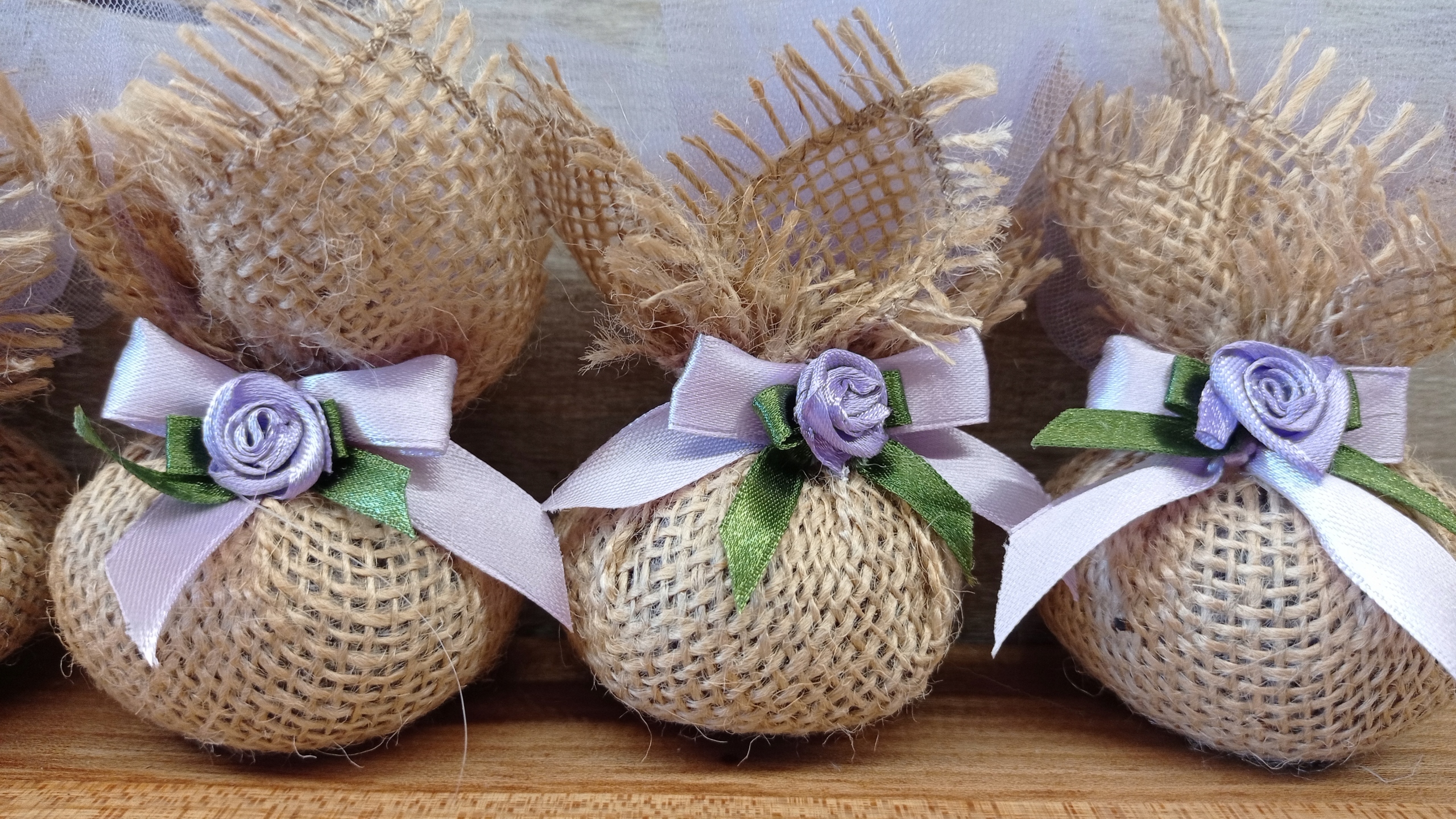 Пакетики з сушеною ЛАВАНДОЮ з екоджуту, прикрашені бантами та квіткою
