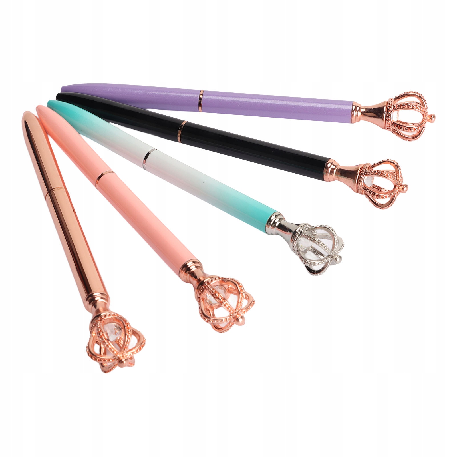 1. Декоративна корона: кожна ручка прикрашена красивою короною у верхній частині, що демонструє вашу елегантність та індивідуальність. 2,5 шт.: ви отримаєте загалом 5 шт. чорнильних ручок, які відповідають вашим потребам у житті, школі, навчанні та офісі. 3. Розгладження письма: цими чорнильними ручками можна легко користуватися, злегка повернувши їх, вони забезпечують плавне письмо та зручний хват. 4. Широке застосування: ці ручки підходять для використання в класі, позначення різних слів і ведення важливих нотаток. 5. Оцинкований метал: ці офісні ручки мають оцинкований металевий корпус із яскравим покриттям. Вставку легко замінити та встановити.