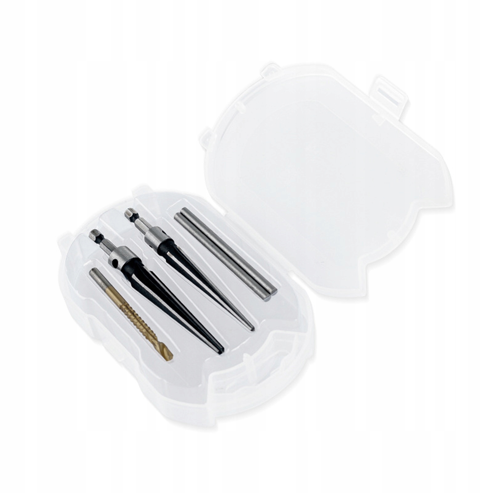 5. Вміст упаковки: Ви отримаєте набір конічних розгорток, включаючи 2 розвертки, 2 тримачі розверток і 1 свердло, всього 5 штук у прозорій пластиковій коробці.