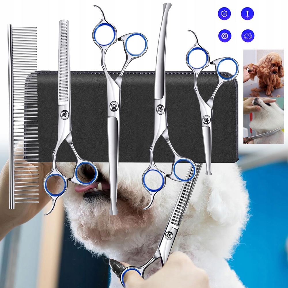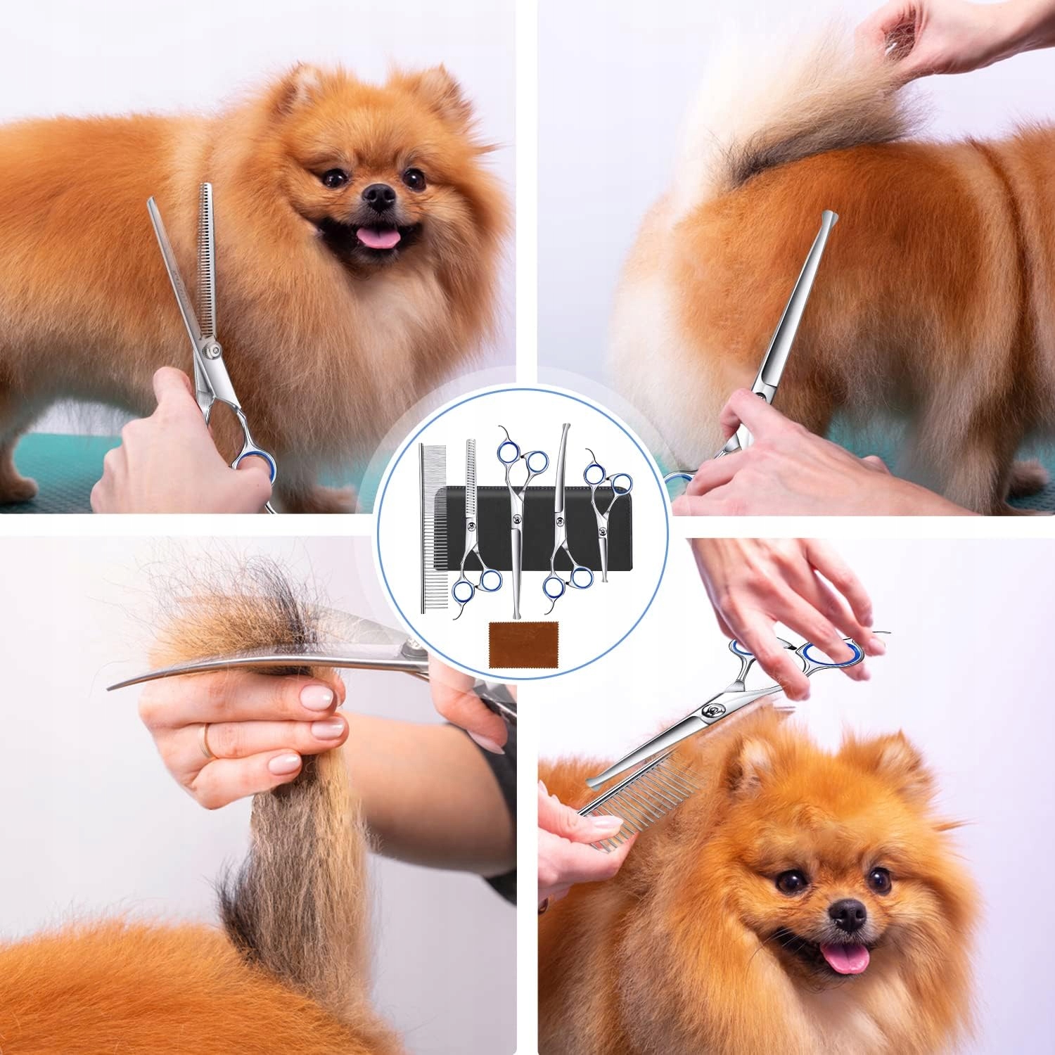 🐶🐶 Спеціально розроблений для вашого вихованця: Професійний набір ножиць для собак повністю обладнаний, прекрасний професійний набір ножиць для собак підходить для всіх потреб у догляді за вашими домашніми тваринами і ідеально підходить для використання в домашніх умовах. Упаковка: 4 x ножиці, 1 х гребінця, 1 х тканина, 1 х сумка.