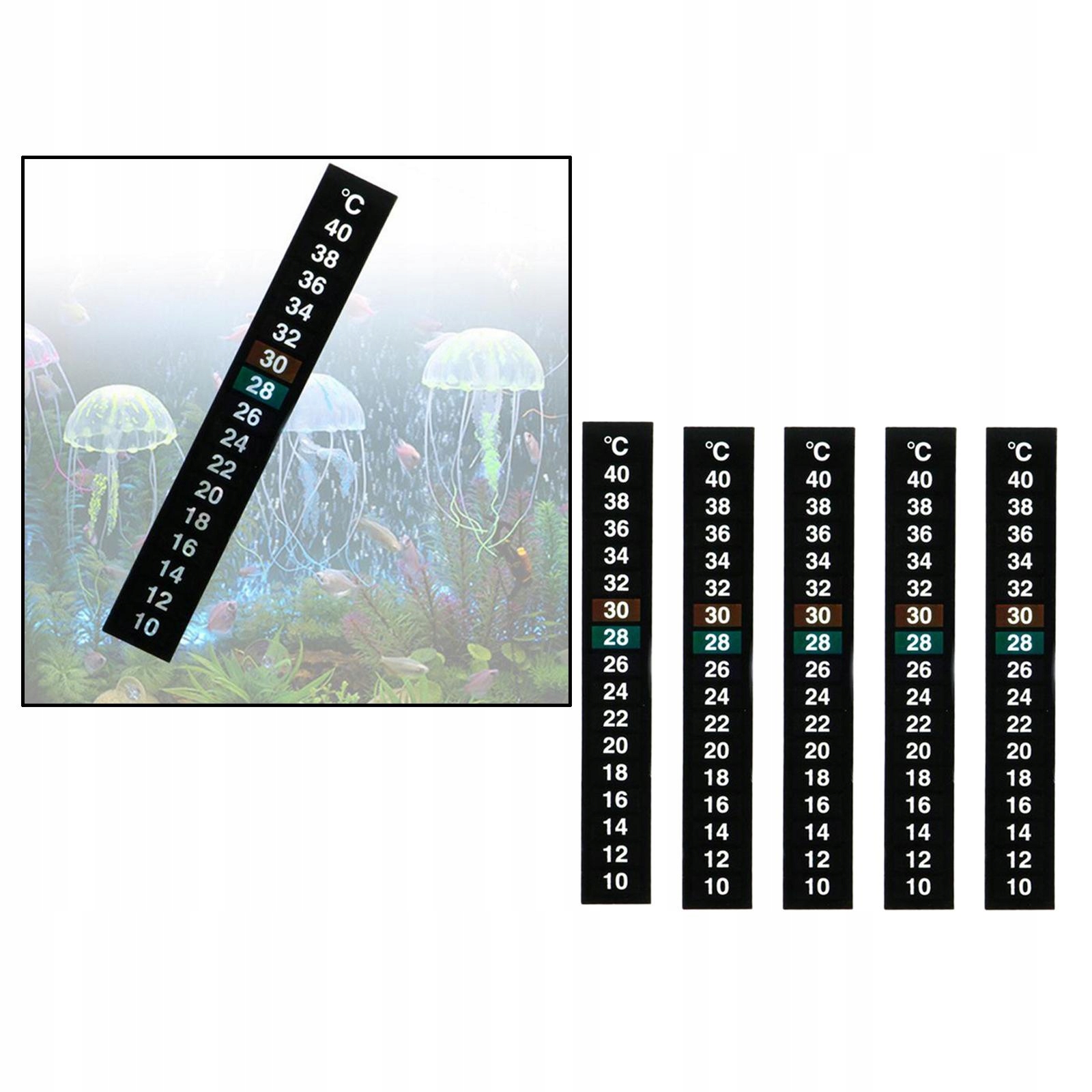 [Легко приклеїти] просто розірвати стрічку і приклеїти її на поверхню акваріума, акваріума тощо; Приблизно через хвилини зміна кольору вказує на точну температуру; Тримайтеся подалі від усіх джерел тепла.