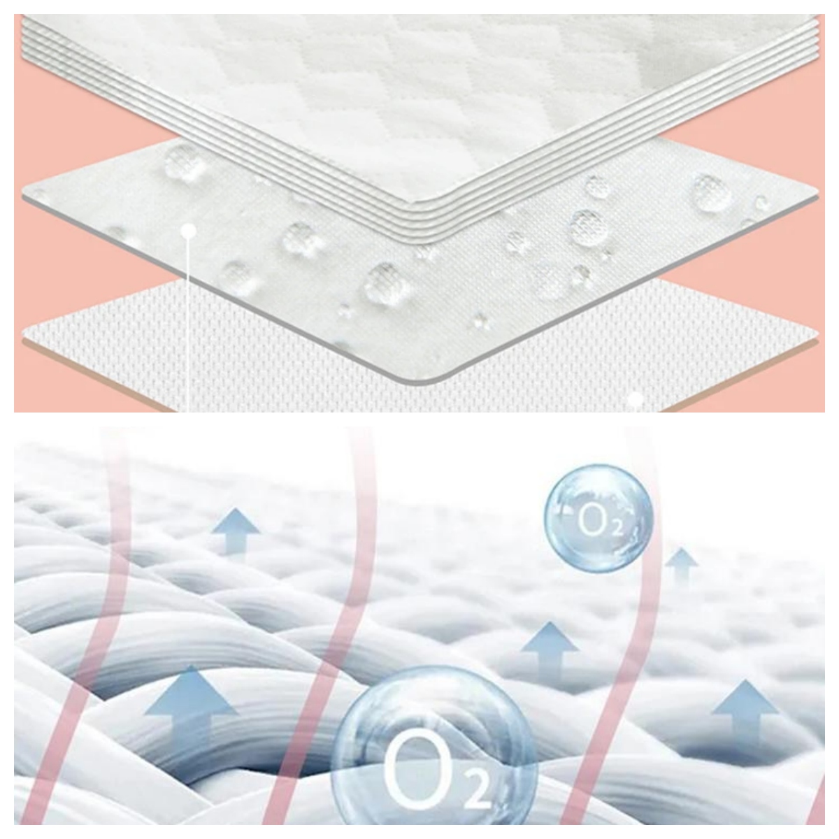 Внутрішня підкладка складається з 4 шарів бавовняної марлі + махрової тканини, яка є 100% водонепроникною. Середній шар TPU запобігає витоку сечі, а два зовнішні шари бавовняної марлі м’які та зручні для дитини.