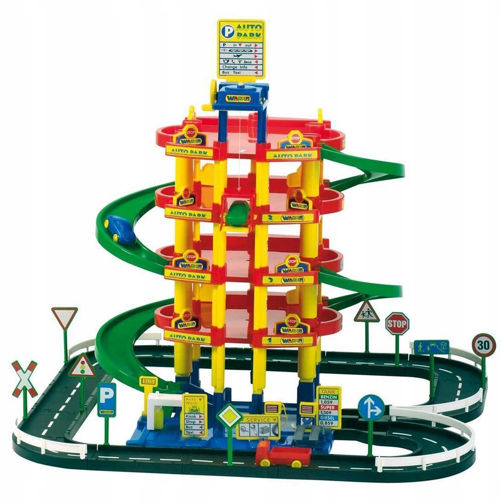 Чудовий 5-рівневий паркінг — це вражаюча будівля. Пересування між окремими поверхами споруди можливе завдяки спеціальній колії та ліфту для транспорту. На кожному вході є охоронні ворота. На найнижчому рівні маленький водій матиме можливість відвідати автомайстерню, де він зможе зробити техогляд і будь-який необхідний ремонт. Дефіцит пального заповнюватимуть на АЗС з двома роздавальними колонками. При необхідності він також зможе скористатися мийкою. Після вашого візиту ваш вимитий, очищений і навощений автомобіль виглядатиме так, ніби він щойно покинув автосалон хвилиною раніше. Усі елементи іграшки виготовлені з матеріалів найвищої якості, що забезпечує тривале та безпечне використання.