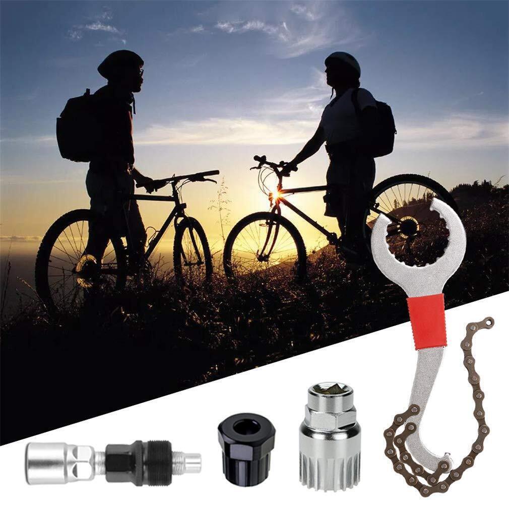 🚲【Багатофункціональний набір інструментів】 У комплекті: 1 x ланцюговий ключ 3 в 1, 1 x різак для ланцюга, 1 х знімач каретки, 1 х знімач вільного ходу, 1 х шатун. У набір входить усе необхідне для заміни квадратного нижнього кронштейна. Ви можете легко зняти та знову прикріпити педалі та каретку велосипеда, а вкоротити та замінити ланцюг просто.