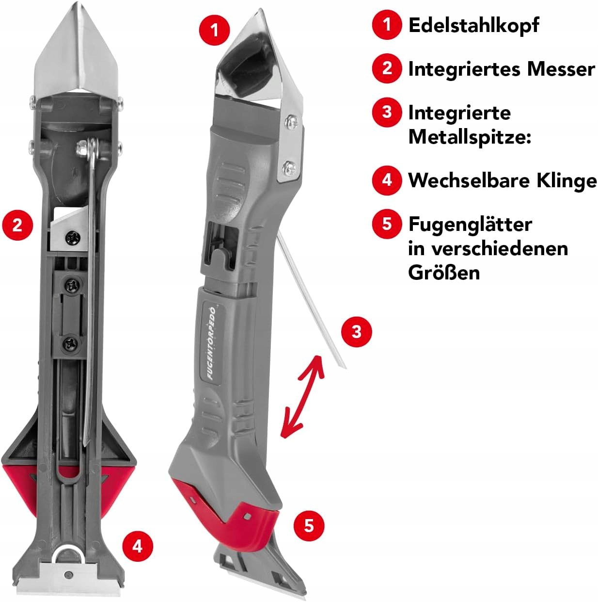 агент для видалення силікону Fugentorpedo 5 в 1 для видалення старих та нових силіконових та акрилових суглобів | видалення та згладжування одним інструментом до 28 різних суглобів