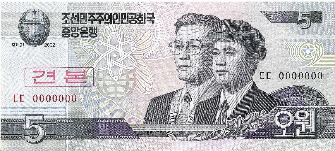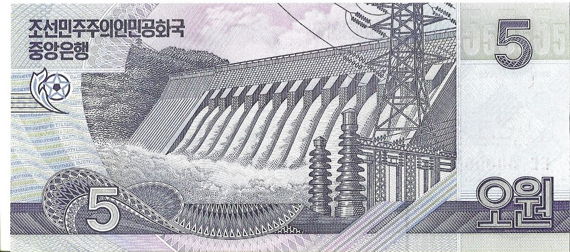 - Номінальна вартість: 5 ₩ - північнокорейська вона