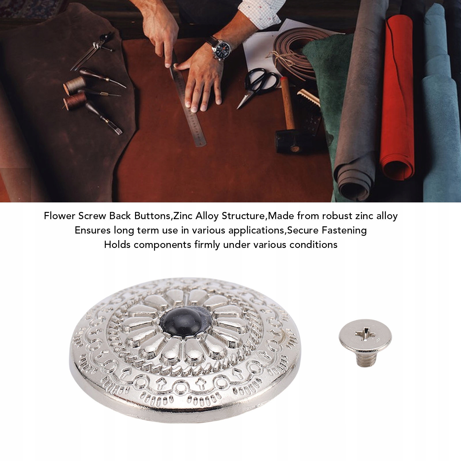 5. Пакет включає: кожен набір містить п'ять срібних кнопки квітів 30 мм та 4,5 мм гвинтів, що забезпечує достатню кількість запасів для завершення багатьох проектів саморобки з атмосферою та стилем.