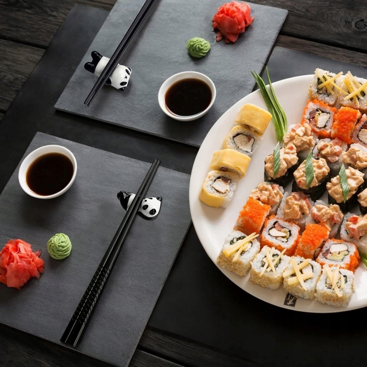 5 x КИТАЙСЬКІ ПАЛИЧКИ ДЛЯ СУШІ + 5 x НАБІР ТРИМАЧІВ ДЛЯ ПАЛИЧОК ПАНДА