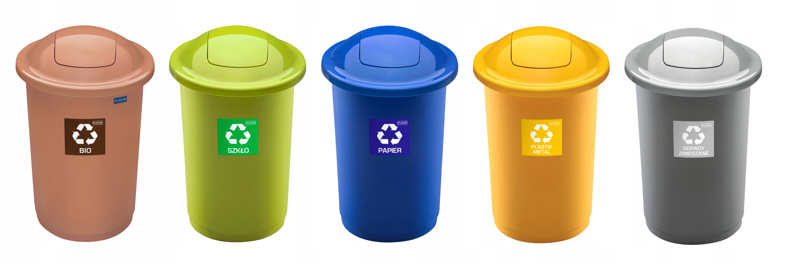 5 x Кошик, встановлений для сегрегації відходів 5x50L - паперу, скло, пластику, біо, ін. Вони чудово працюють вдома, компанія, а також різні типи громадських місць, такі як школи, університети та офіси. Виготовлений з густого пластику з двома рахунками -рахунками: кришка гладкого, блискучого пластику, що дуже легко зберегти чистота; Відро з матовим покриттям, на якому ви не бачите подряпин. Клапан нахилений вниз, і завдяки пружинному механізму він закривається спонтанно.