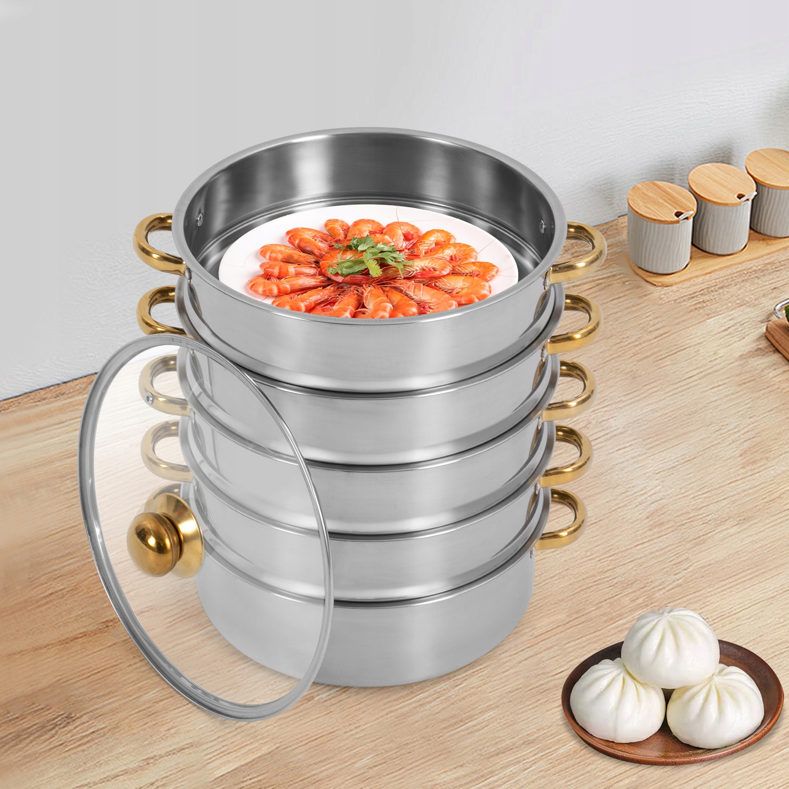 ◾У напруженому темпі життя наша 5-рівнева каструля з пароваркою робить кожне приготування їжі початком здорового життя. Він виготовлений з високоякісної нержавіючої сталі, безпечної та стійкої до корозії, і суворо перевіряє безпеку вашого столу. З його допомогою можна досягти швидкого і рівномірного нагріву, зберегти оригінальний смак і багату поживність інгредієнтів і є ідеальним вибором для сучасних сімей. Негайно подбайте про своє здоров’я та почніть зі смачної страви, приготованої на пару!