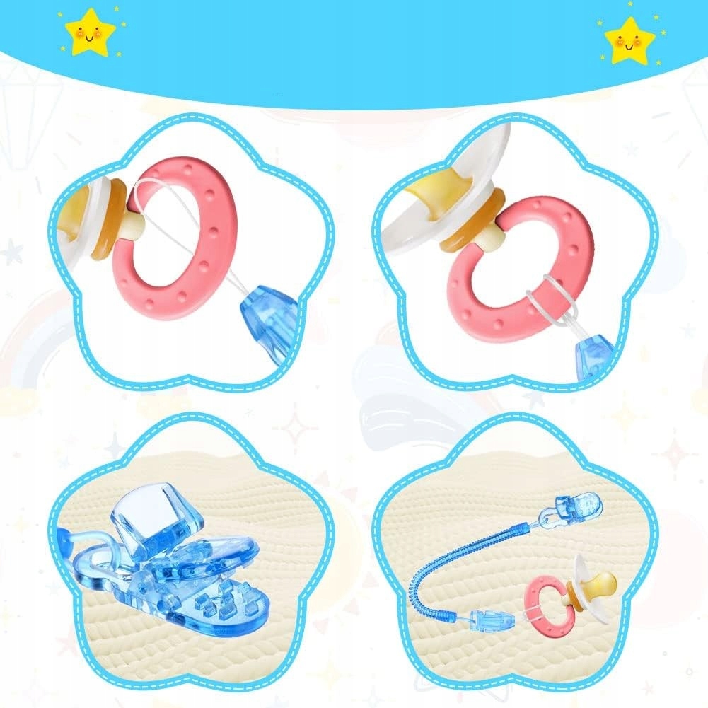 Набір із 5 ланцюжків/шнурів для соски та прорізувача, ідеально підходить для немовлят, створений з урахуванням безпеки та комфорту немовлят і спокою батьків. Ці практичні аксесуари допомагають запобігти втраті пустушки чи прорізувача, тримаючи їх завжди під рукою вашої дитини.