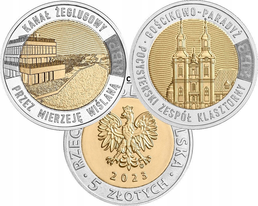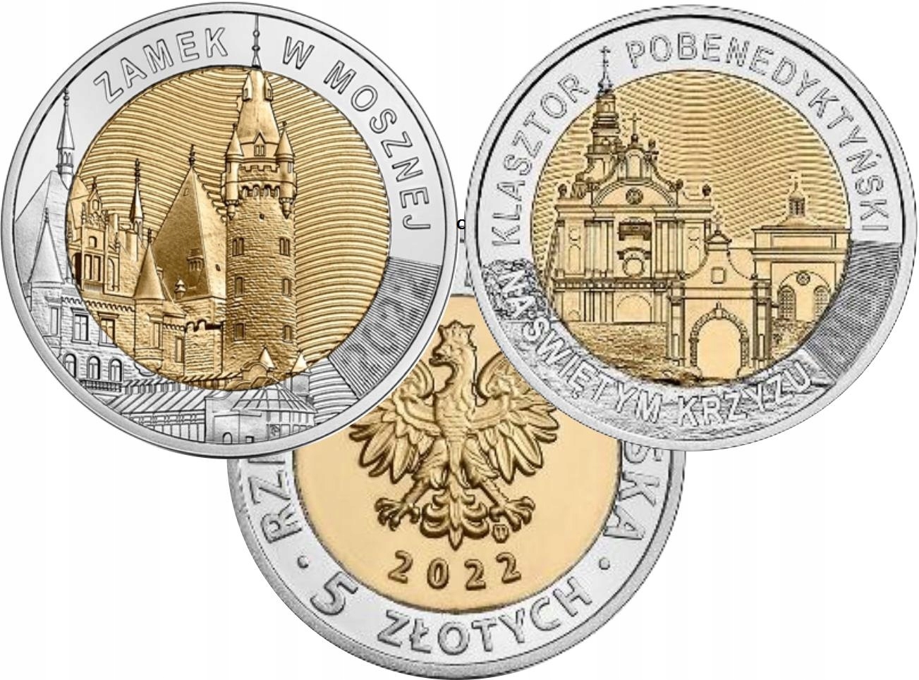 5 злотих Замок у Ланьцуті + Бенедиктинське абатство в Тинці + 2023 + 2022