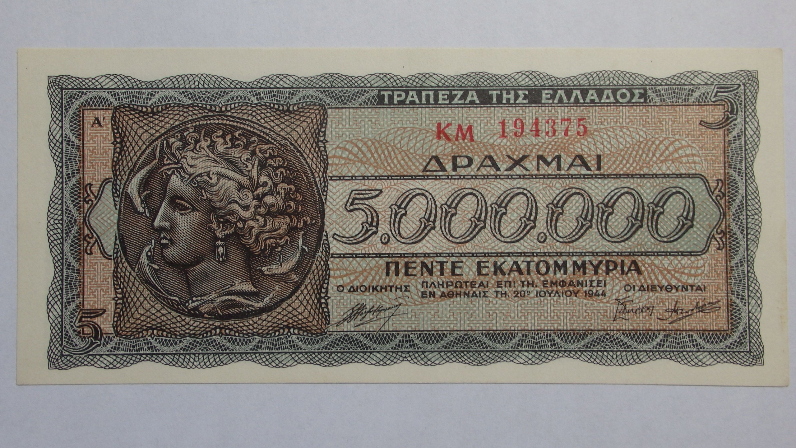 5.000.000 Драхм, Греція, 1944р. X2912
