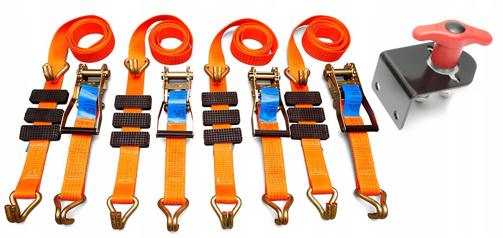 - 4 3-точкові ремені, довжиною 3 м кожен, сертифіковані EN12195-2:2001. Довговічність 5T. Пришиті бірки.