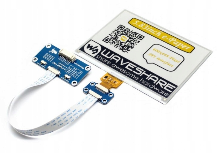 Модуль з дисплеєм e-Paper діагоналлю 5.83 " та роздільною здатністю 600x448 пікселів. Він має можливість відображати контент з дворівневою градацією сірого в трьох кольорах: жовтому, чорному та білому. Вбудований контролер спілкується через інтерфейс SPI. Дисплеї цього типу характеризуються високою контрастністю виведеного зображення і споживають електроенергію тільки при зміні відображуваного контенту. Модуль сумісний з системами 3,3 В і 5 В. У комплект входить щит, який дозволяє підключити дисплей до Raspberry Pi через 40-контактний роз'єм. Сторінка Wiki надає підтримку у вигляді прикладів використання з Raspberry Pi, Jetson Nano, Arduino, STM32.