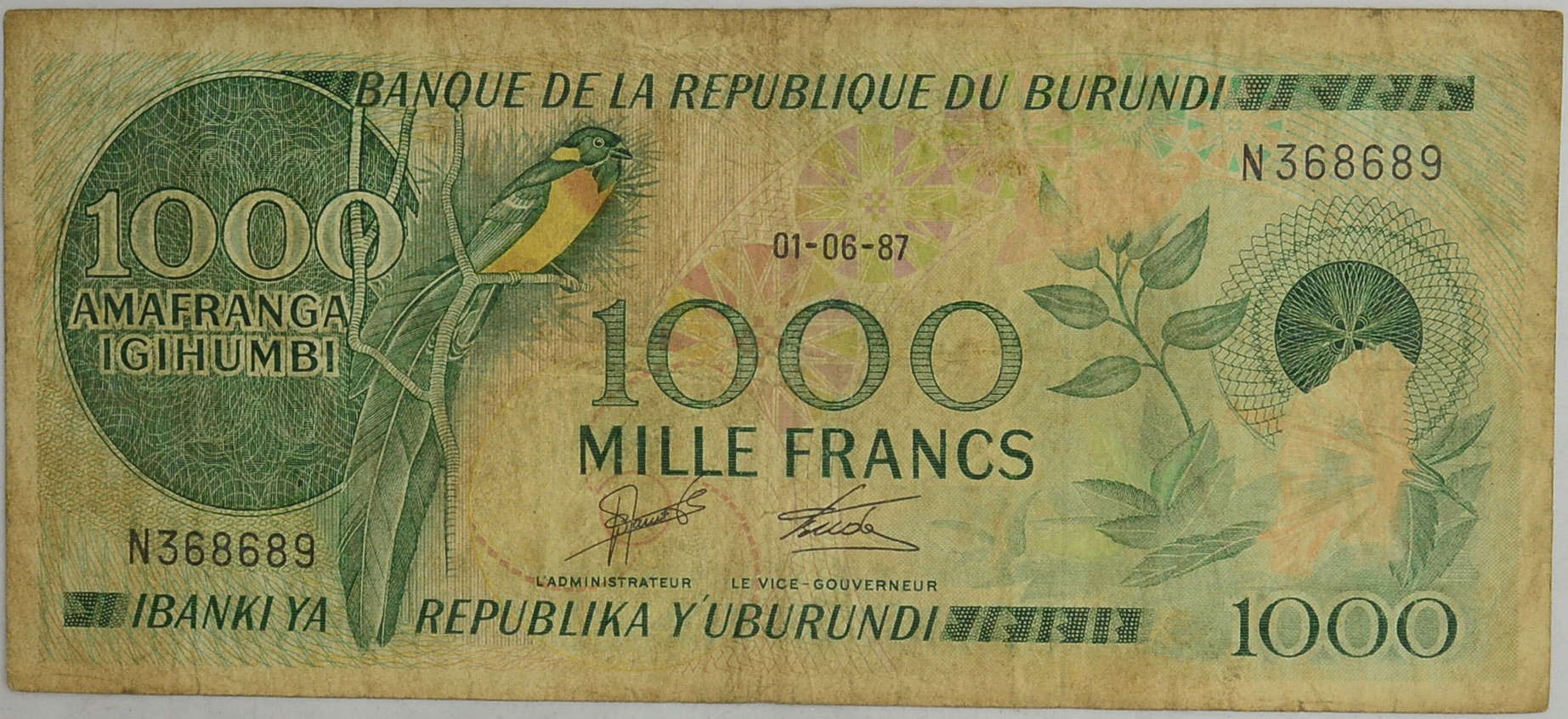 5.db.Burundi , 1000 франків 1987 р. рідко, St.3