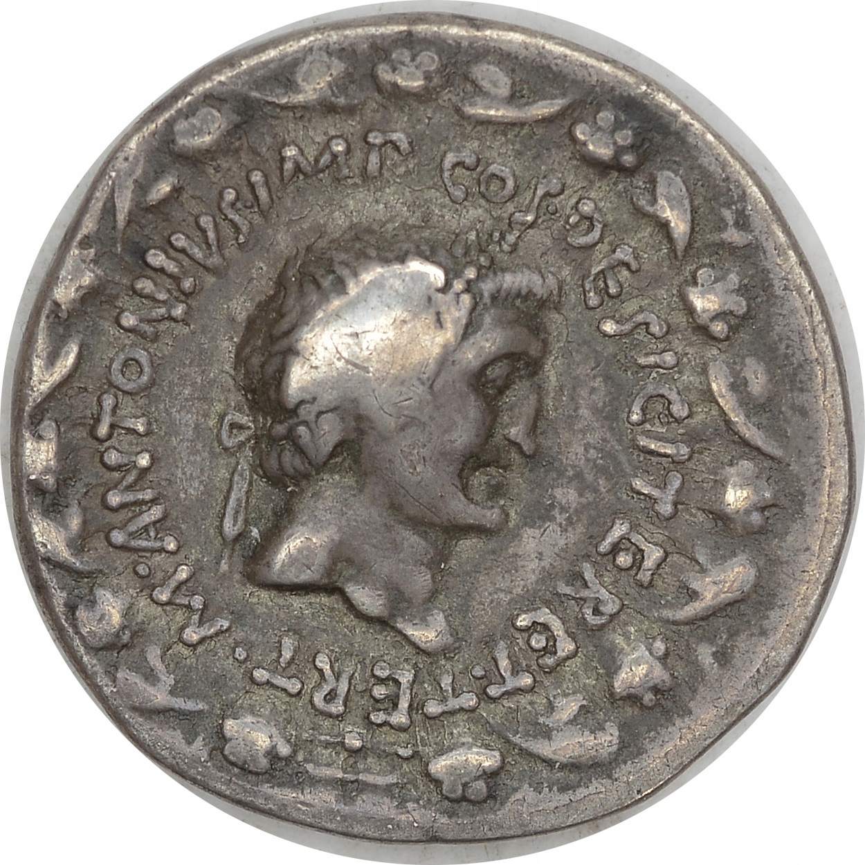 - Опис: Марк Антоній і Октавія. Діаметр приблизно 28 мм.