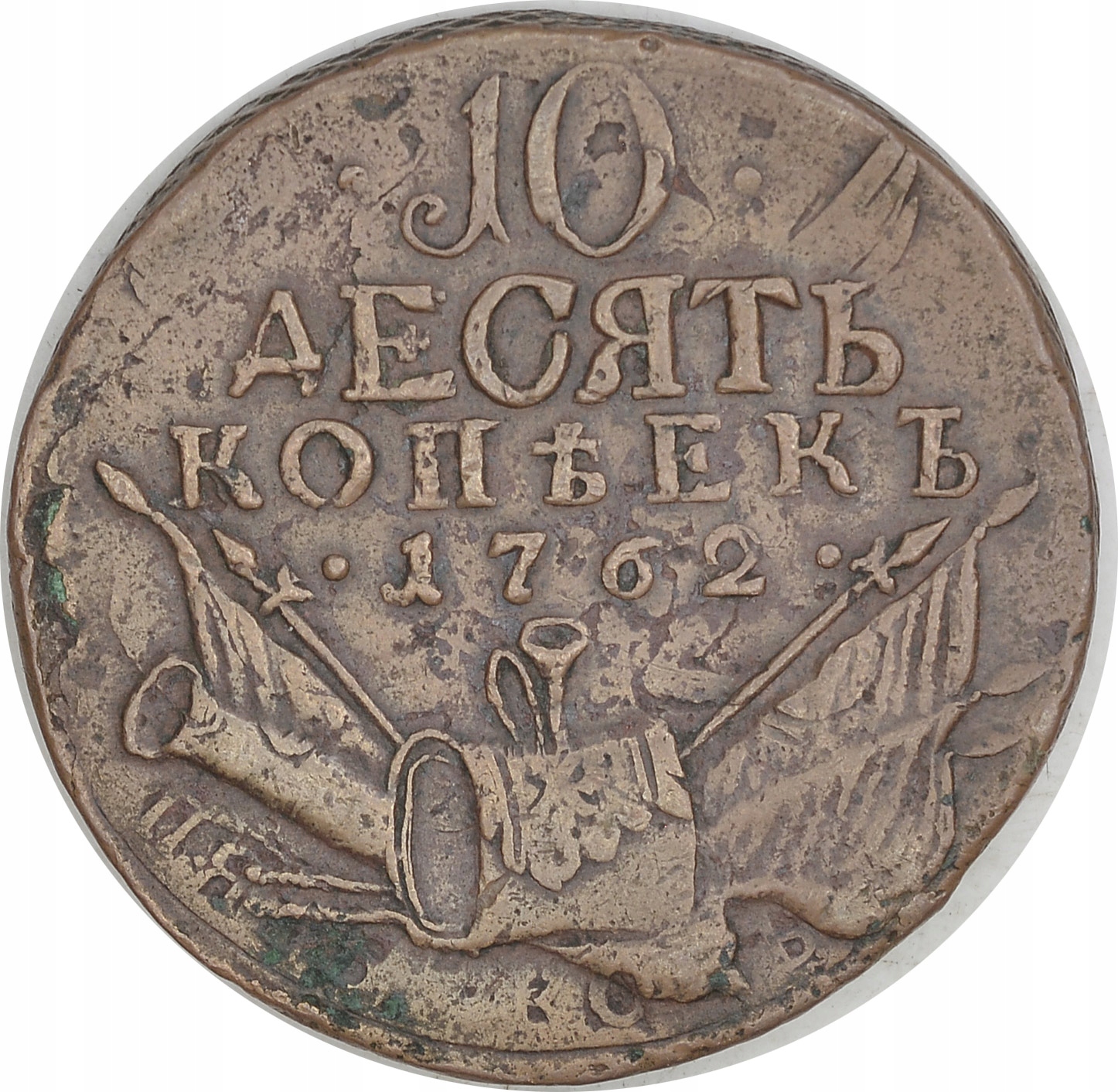 5.hf.ROSJA , ПЕТРО III, 10 КОПЕЙК 1762 р. b.rzadka