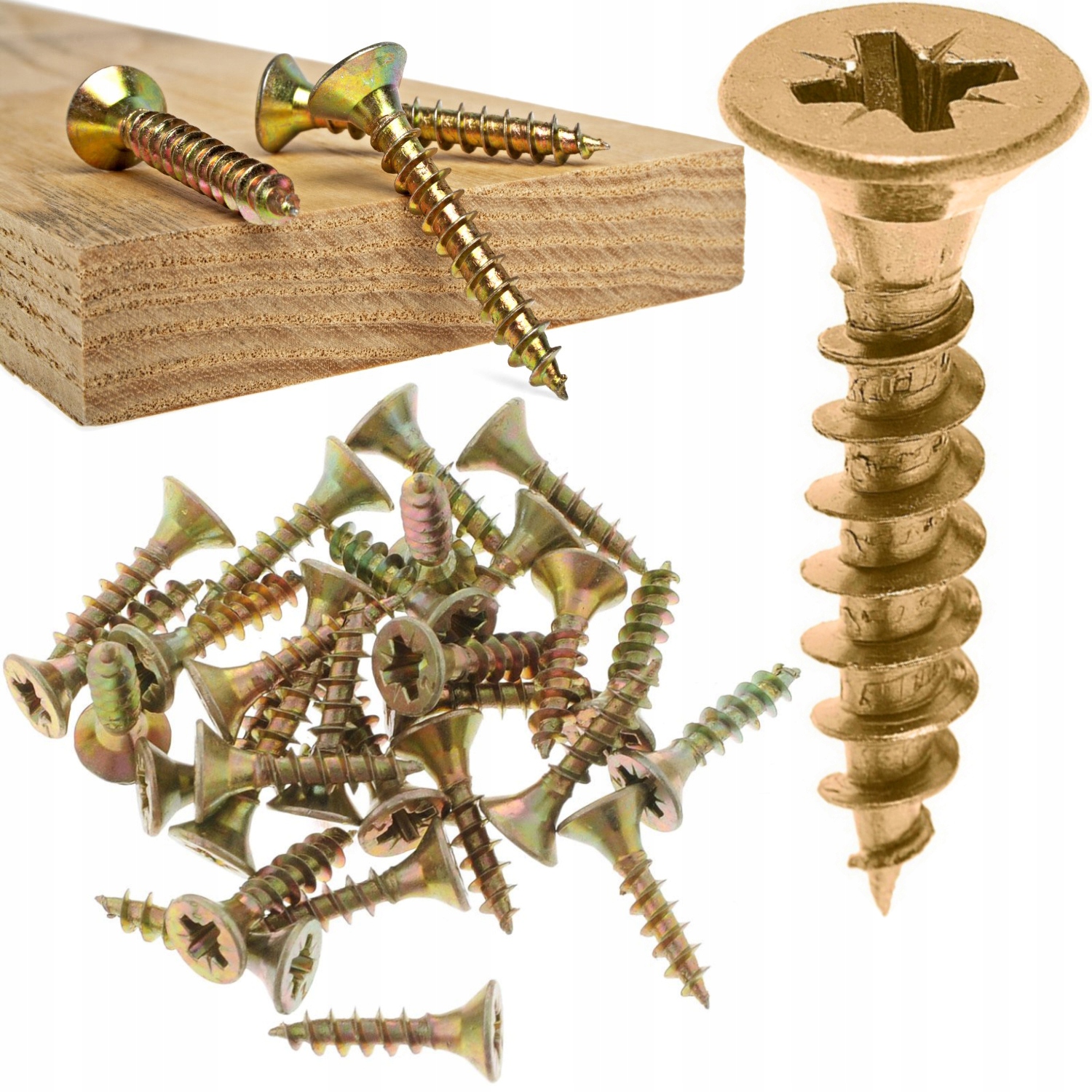 встановити - 50 шт. Гвинти з конічною головкою в жовтому оцинкованому покритті. Гвинт затверджується / загартовано, він призначений для меблів та оббивних з'єднань, також зі сталевими кутами, ліжками для ліжок, полиць. Конічний гвинт має розріз для перехресної викрутки.
