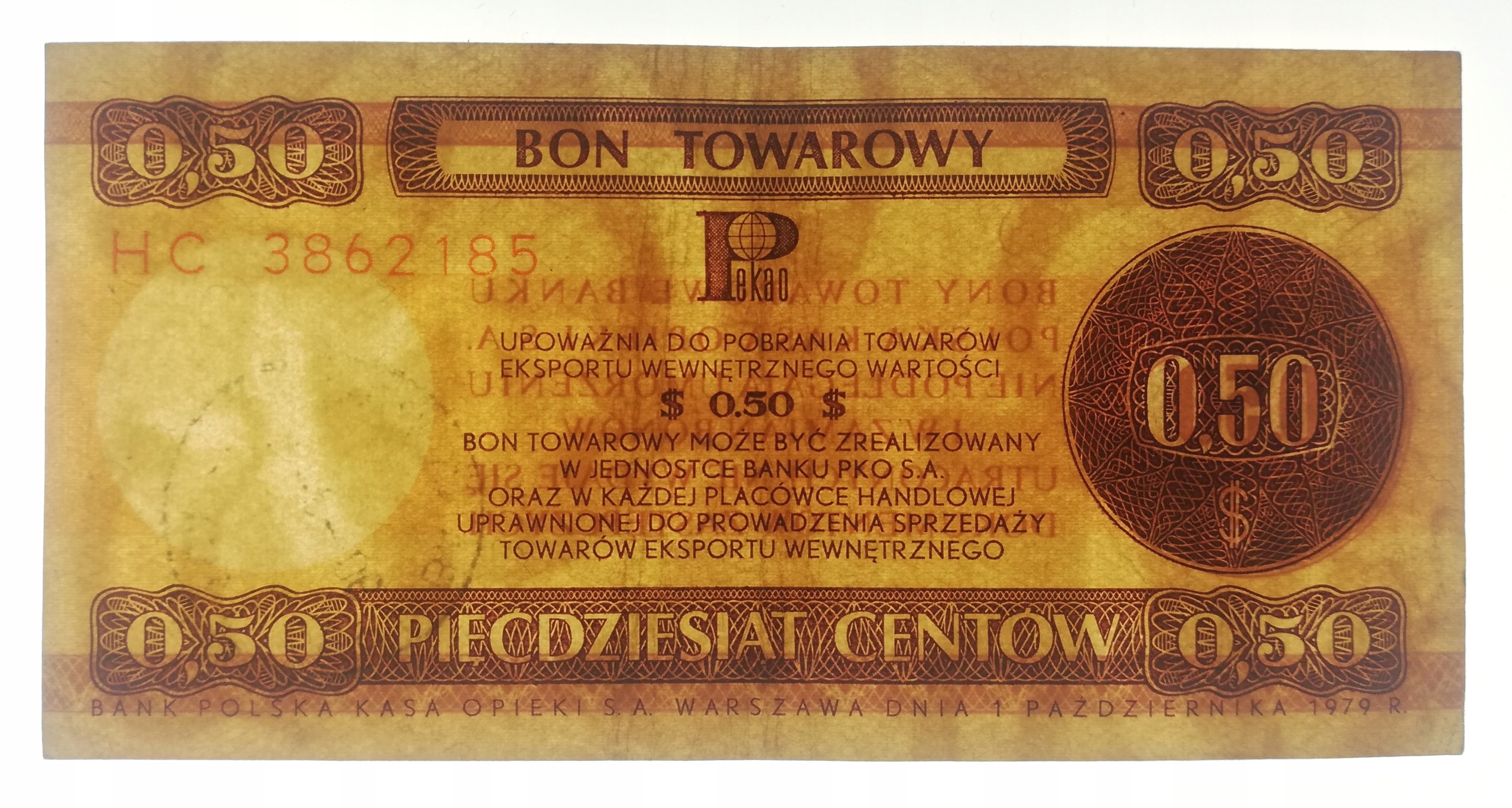 50 центів Подарунковий сертифікат Pewex серії HC 1979 малий рідкісний стан III+