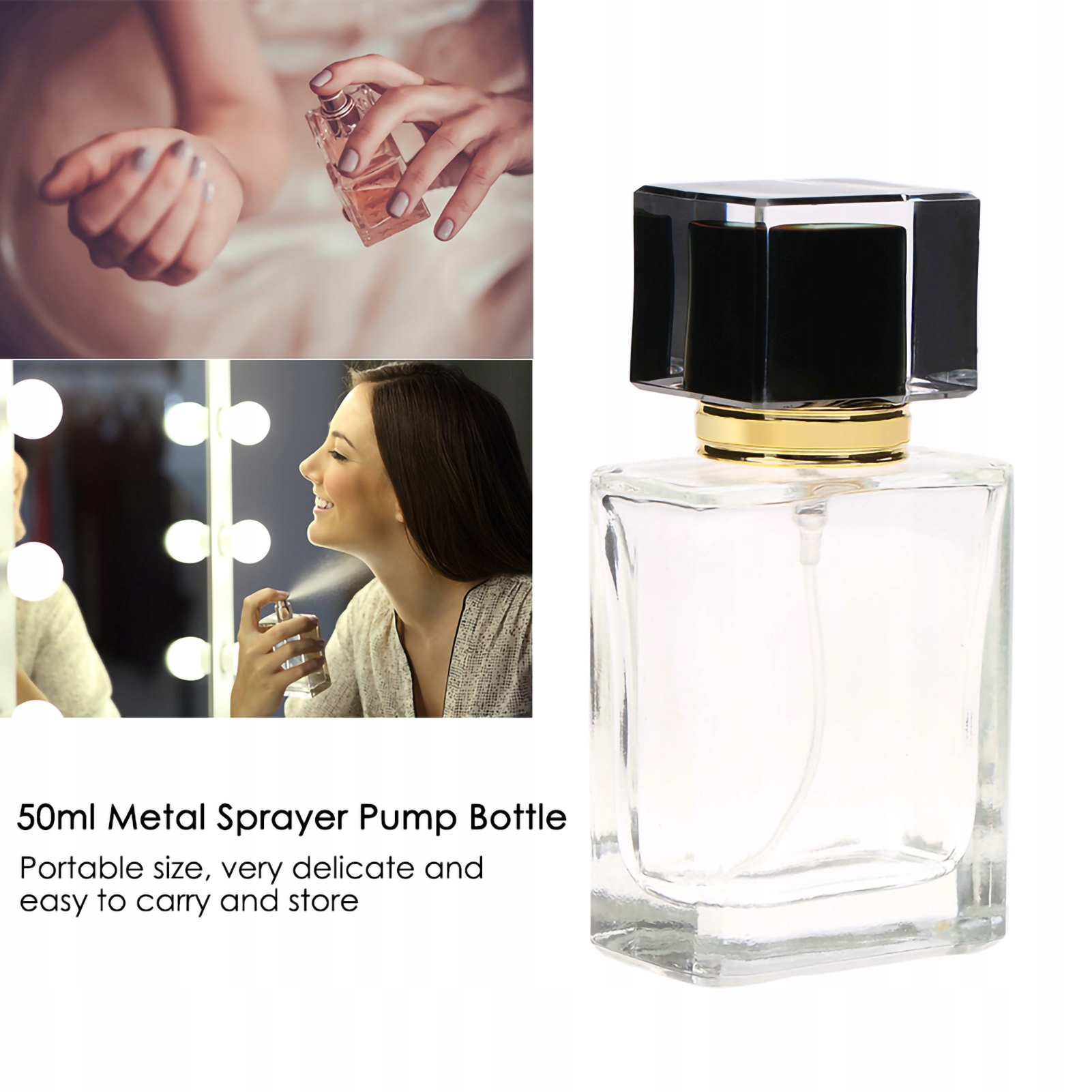 - Ця портативна парфумерна пляшка підходить для використання на подорожі або для повсякденного використання. Портативний розмір, дуже делікатний і прикріплений до перенесення та зберігання.