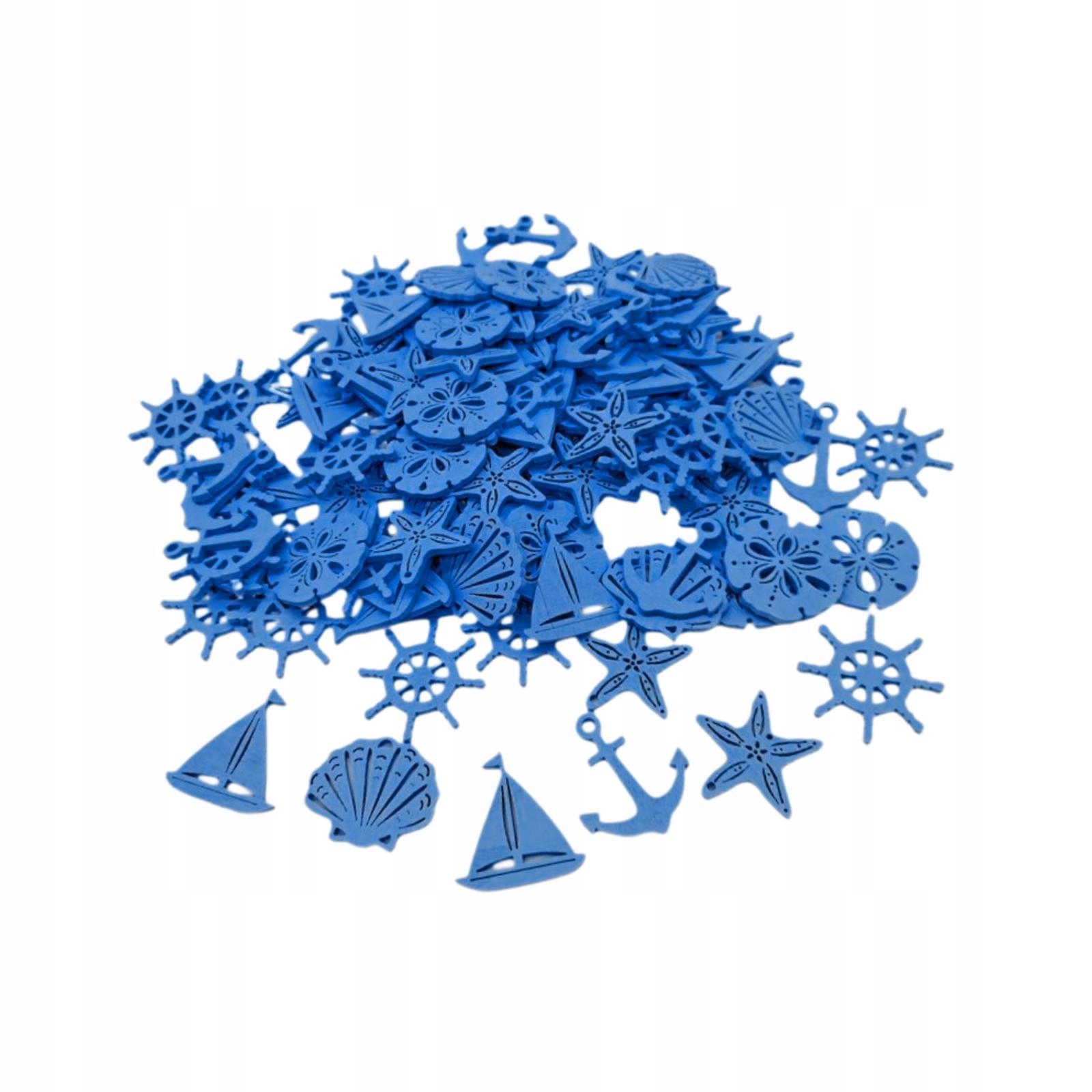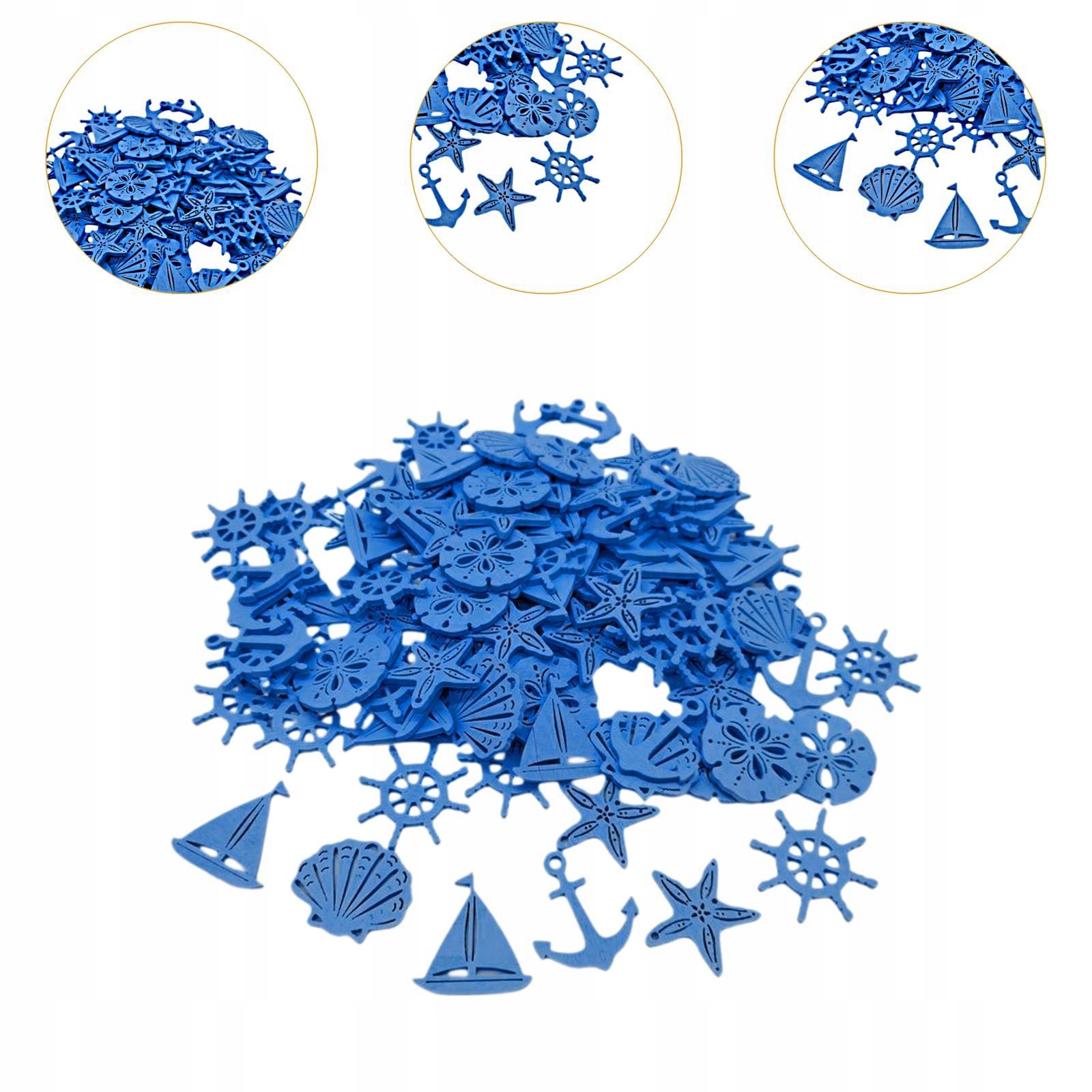 50 штук морські невеликі вирізки, виготовлені з дерев’яного художнього твору, темно -синій