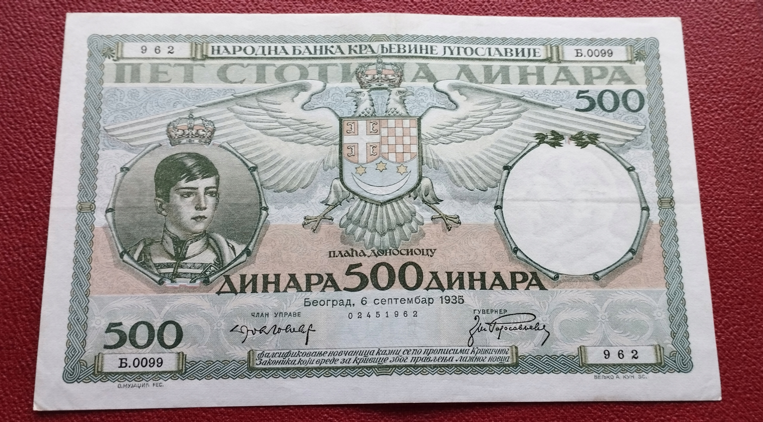 500 ДІНАРІВ КОРОЛІВСТВО ЮГОСЛАВІЯ 1935 ст.-2