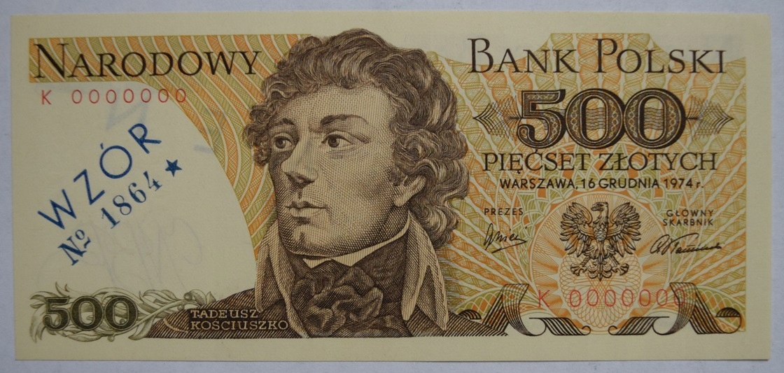 500 ZŁ TADEUSZ KOŚCIUSZKO 1974 SER. K WZÓR - ST. 1