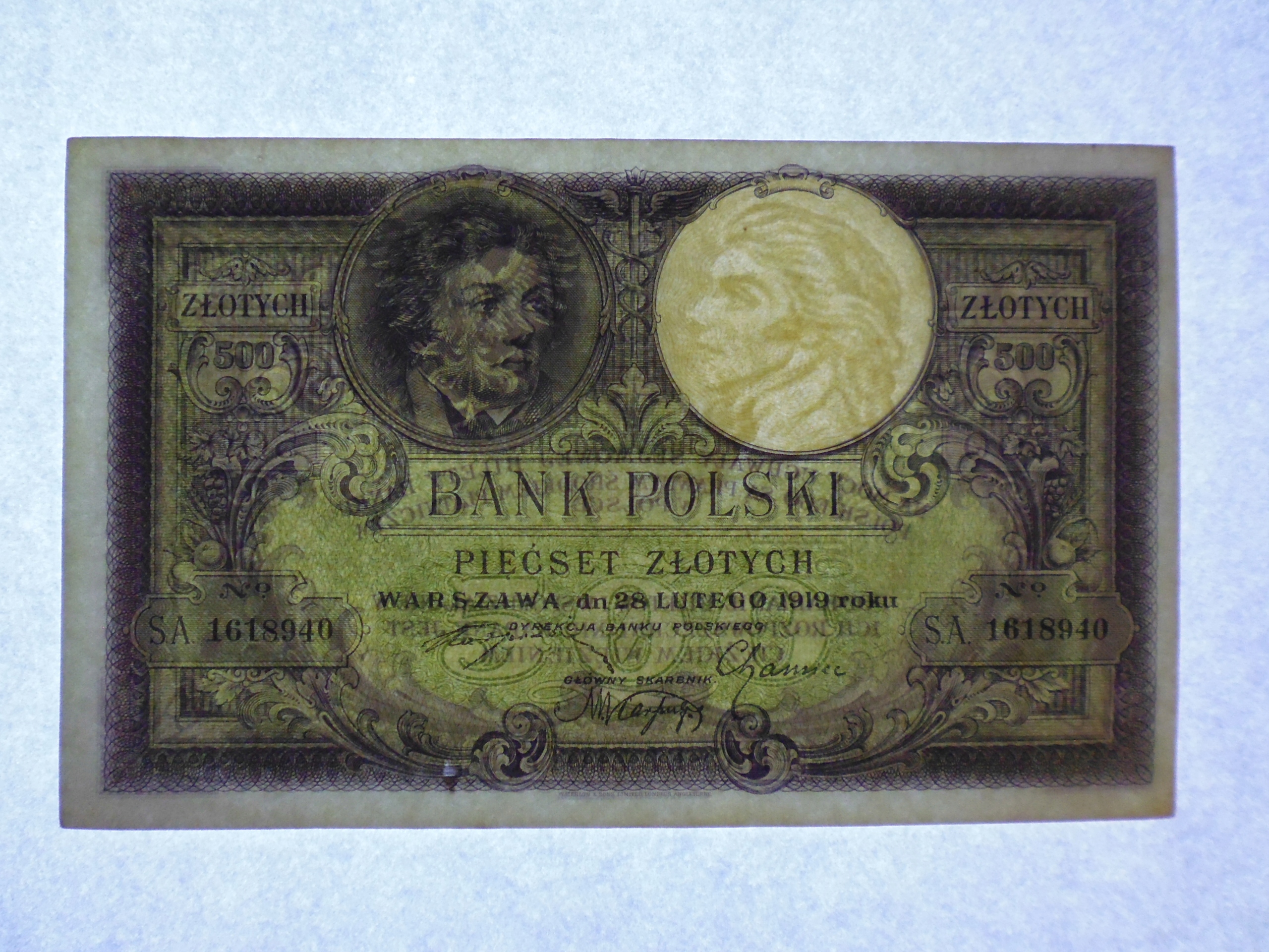 500 Zlotys 1919 серії. Є. Stan 1 UNC