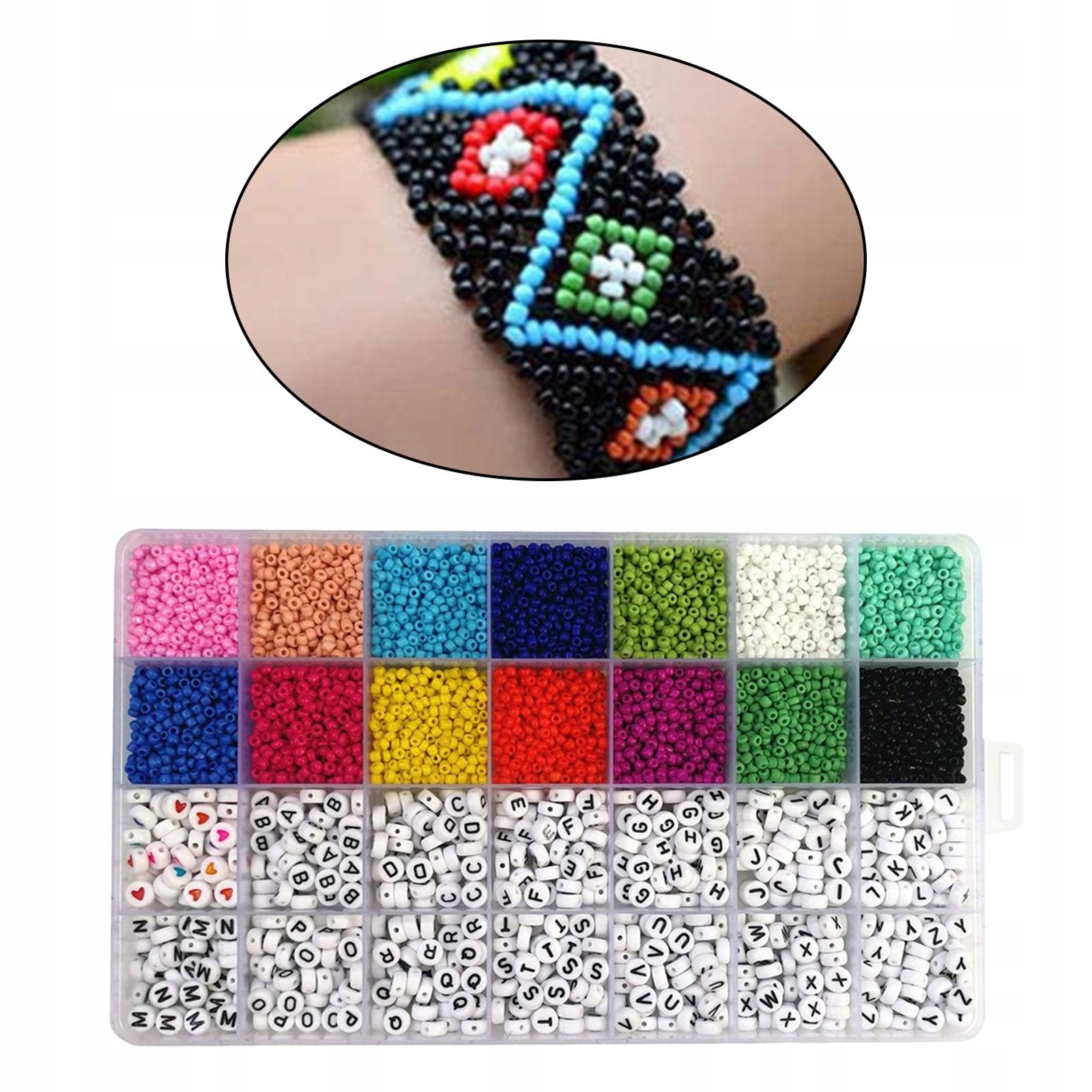 Вміст упаковки: набір бісеру складається з 5000 елементів, у тому числі 4300 різнокольорових намистин 14 різних кольорів, у тому числі 700 намистин із буквами та сердечками. Розмір бісеру для в'язання 3 мм, букви 4 х 7 мм.