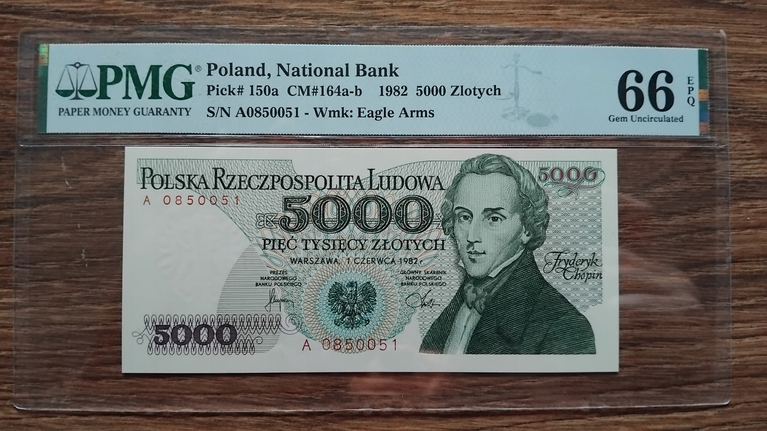 5000 злотих 1982 року. A 0850051 PMG 66 EPQ