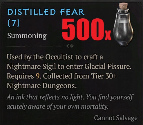 500x Distilled Fear Ice Diablo 4 СЕЗОН 5 Infernal Hordes