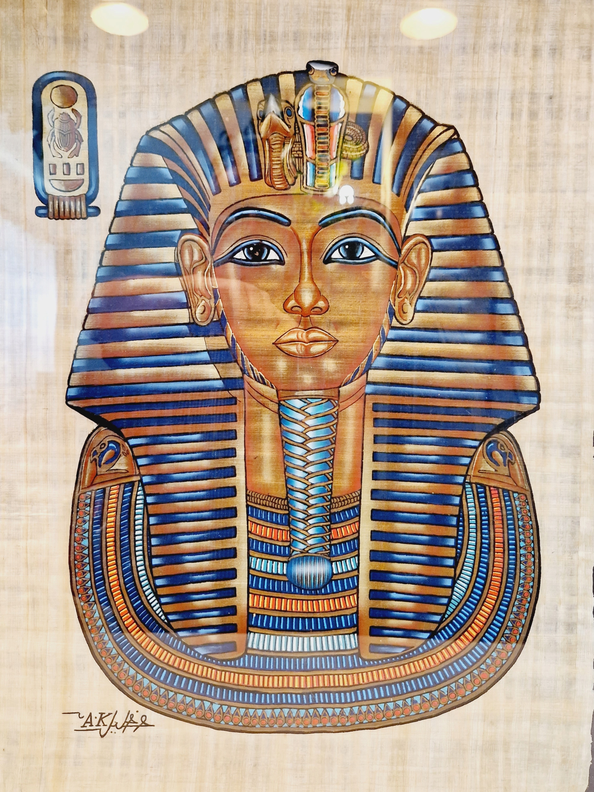 51 см х 61 см / СУВЕНІРИ З ЄГИПТУ - РОЗПИС НА ПАПІРУСІ - В ЗАСКЛЕНІЙ РАМІ /X132