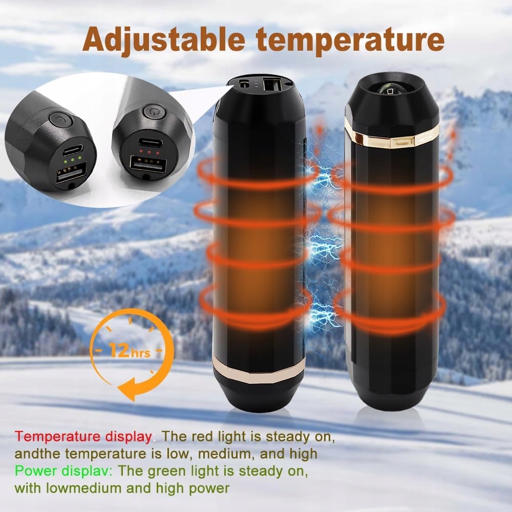 Грілка для рук USB 2 в 1, 5200 мАг, багаторазова, Power Bank, 3-ступеневий мобільний міні-електричний обігрівач, кишеньковий обігрівач для кемпінгу, зимової риболовлі, катання на лижах