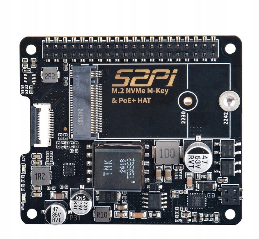 Модуль 52Pi M.2 NVMe PoE+ HAT розроблений для Raspberry Pi 5 і поєднує підтримку швидкого запису ключів M NVMe з живленням через Ethernet. Забезпечує прямий інтерфейс PCIe M-key для підключення 2230 або 2242 форм-фактору NVMe SSD, наприклад Raspberry Pi SSD.
